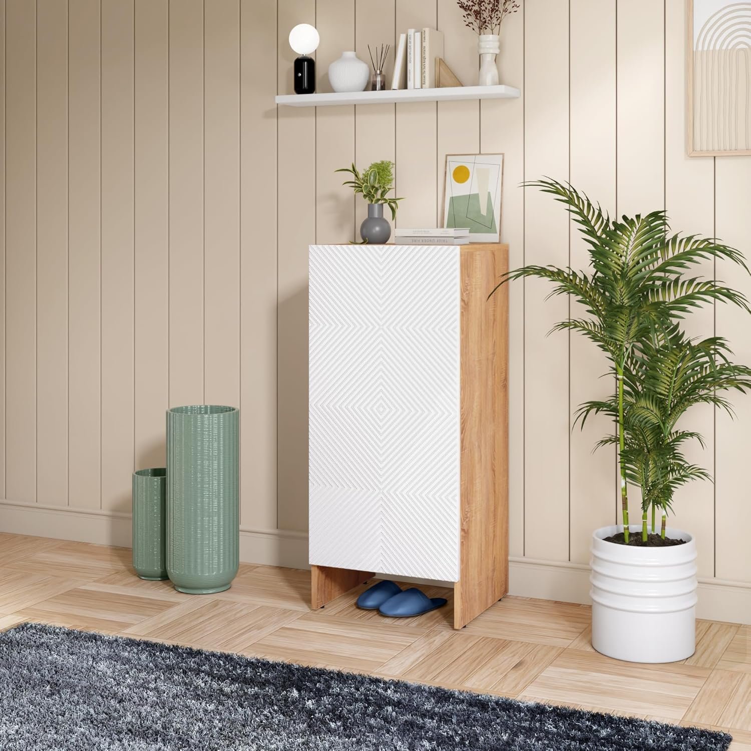 Rocco Engineered Wood Trudo Modular Shoe Cabinet (10 Pair Cabinet), White