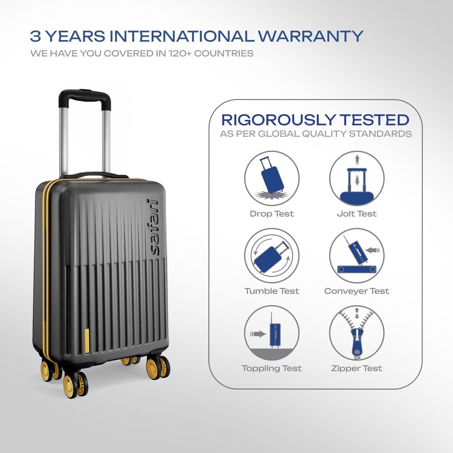 Proudly MADE IN INDIA, this trolley bag comes with 3-years warranty against Manufacturing Defects
