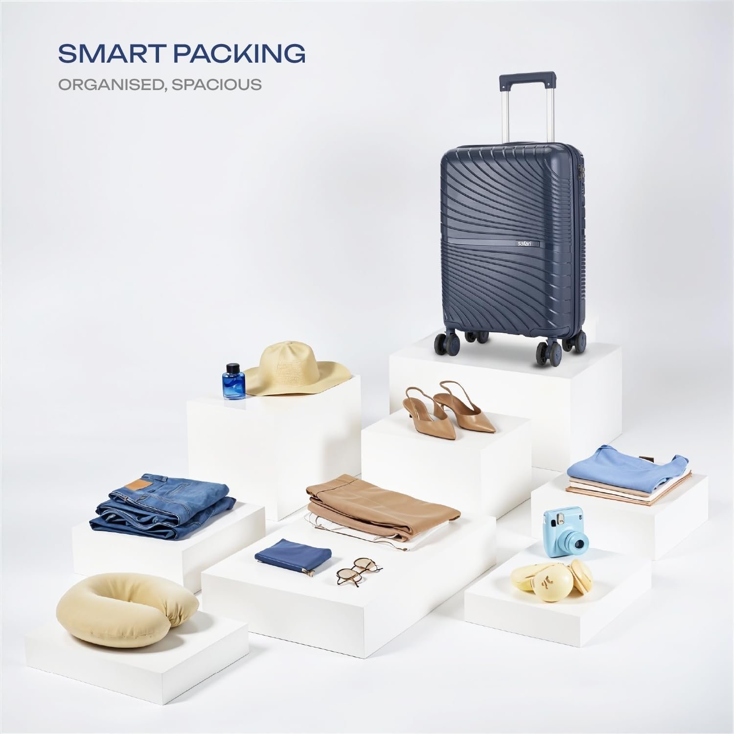 Safari Atlantis Trolley Bags combine style, security, and convenience in a versatile three-piece set. This blue collection features cabin (43L), medium (78L perfect for various travel needs. Each piece boasts a durable virgin polycarbonate shell that’s both lightweight and resilient. The thoughtful design includes dual whisper wheels for smooth navigation and a multi-stop push-button trolley handle that accommodates different heights. Interior organisation is enhanced with compression straps and a dedicated shoe compartment. Security features include an anti-theft zipper and a fixed combination lock for peace of mind. The cabin size measures 59x40x27 cm, medium 69x49x31 cm offering ample space for short trips to extended holidays. These trolley bags exemplify Safari’s commitment to practical, reliable travel solutions that don’t compromise on style.