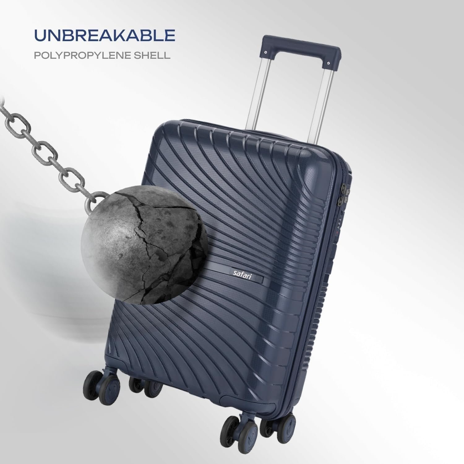 Safari Atlantis 8 Wheels, Anti-Theft Zipper (Cabin & Check-in) Polyproplyene Trolley Spinner Luggage Set of 2, 59Cm, 69Cm Medium