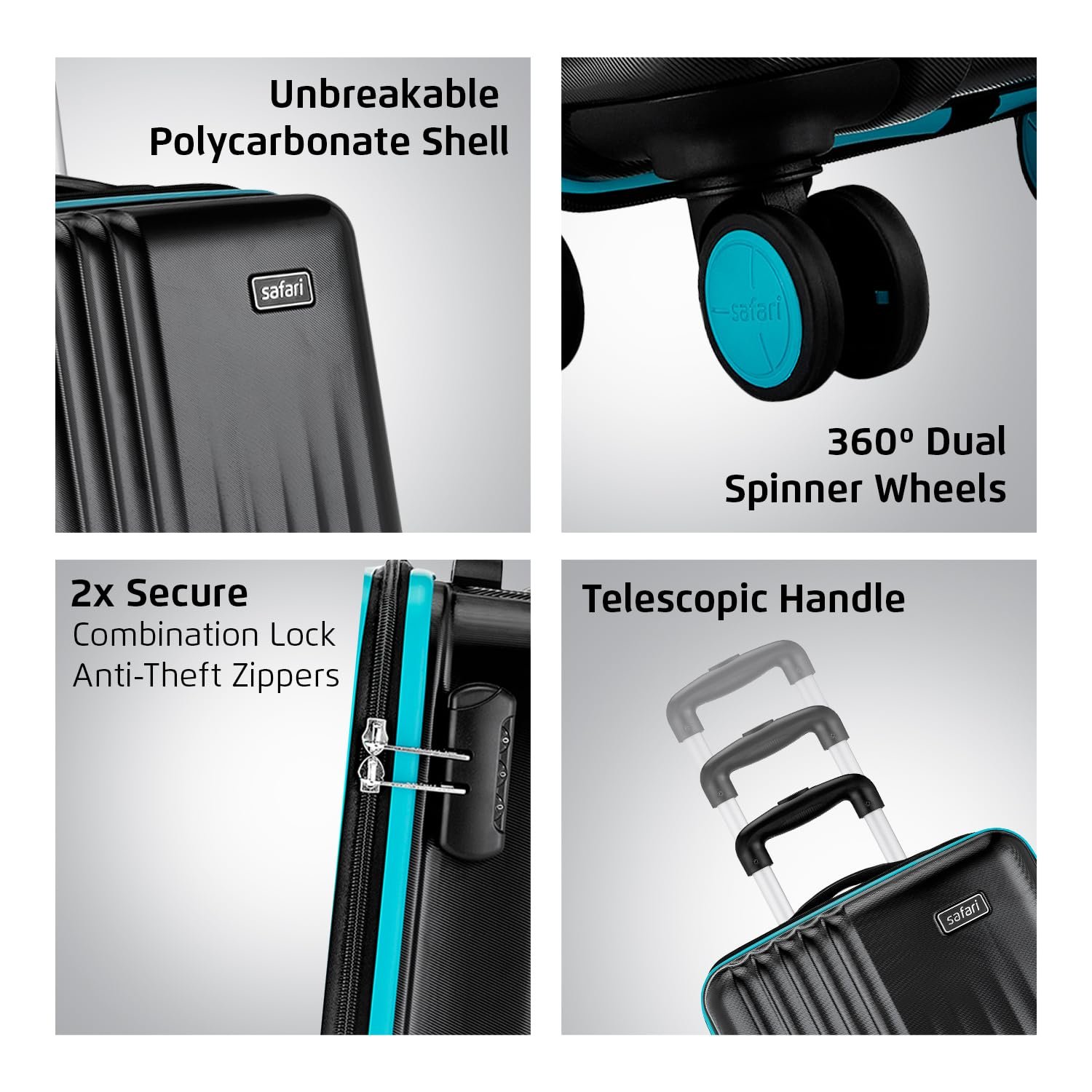 Introducing Safari Citymiles – The Perfect Companion for modern business and leisure travel. This airline compliant trolley bag is designed to maximize packing space, offering 30% extra volume compared to other luggage bags. Crafted from unbreakable polycarbonate material, this suitcase is built to withstand the rigors of modern travel. Featuring 8 smooth-gliding wheels for effortless maneuvering, it’s a breeze to navigate through busy airports or crowded places. The integrated 3 digit combination lock and anti-theft double zippers ensure your belongings are super secure. Produdly MADE IN INDIA, this trolley bag comes with 5 years International Warranty against manufacturing defects.