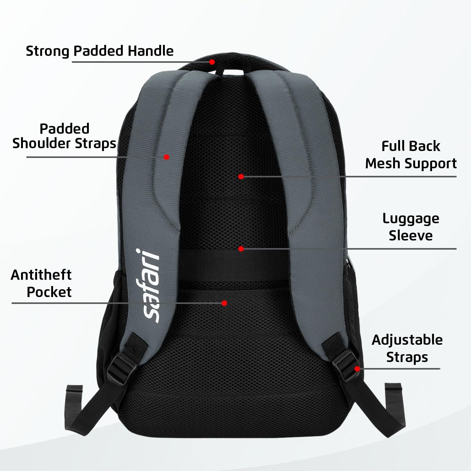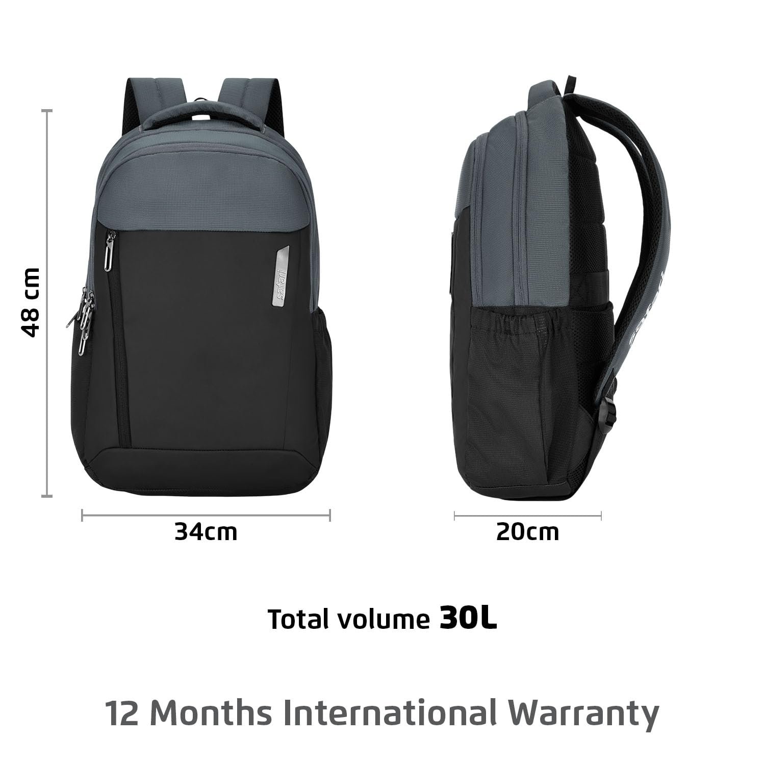 Safari Forge 34L Laptop Backpack, 3 compartments, Raincover, Antitheft pocket, Trolley Sleeve, Organizer, Bottle holder, Front pocket, College bag, school bag, Formal backpack