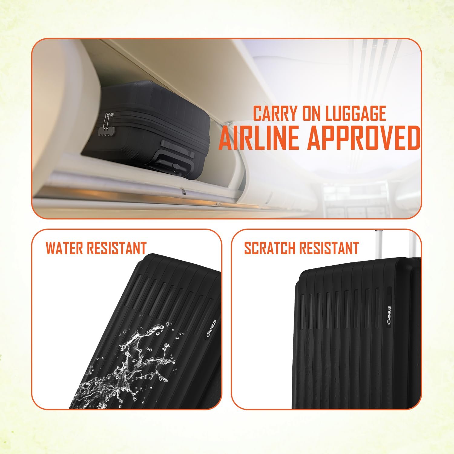 Effortless Maneuverability- Fitted with 4 smooth-rolling spinner wheels, this carry-on suitcase glides effortlessly in every direction. The 360-degree wheeling system ensures seamless movement across terminals, stations, and parking lots.