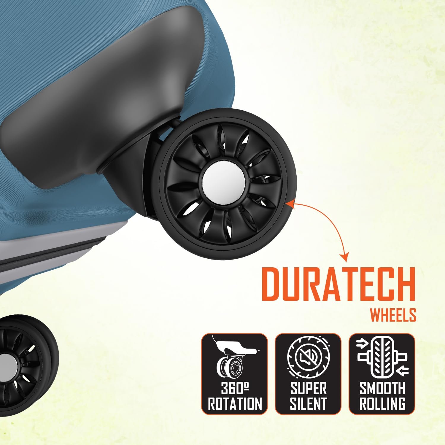 Duratech Wheels: Enjoy effortless maneuvering with 8 smooth rolling spinner wheels that are crafted for all terrains.