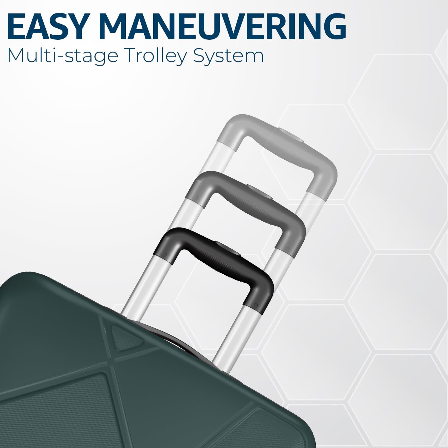 Durable Construction: Crafted from scratch resistant and impact resistant Polypropylene material, the trolley bag is designed to withstand the rigors of travel. A combination of strength, style and unique design, makes this suitcase, the preferred luggage for travel.