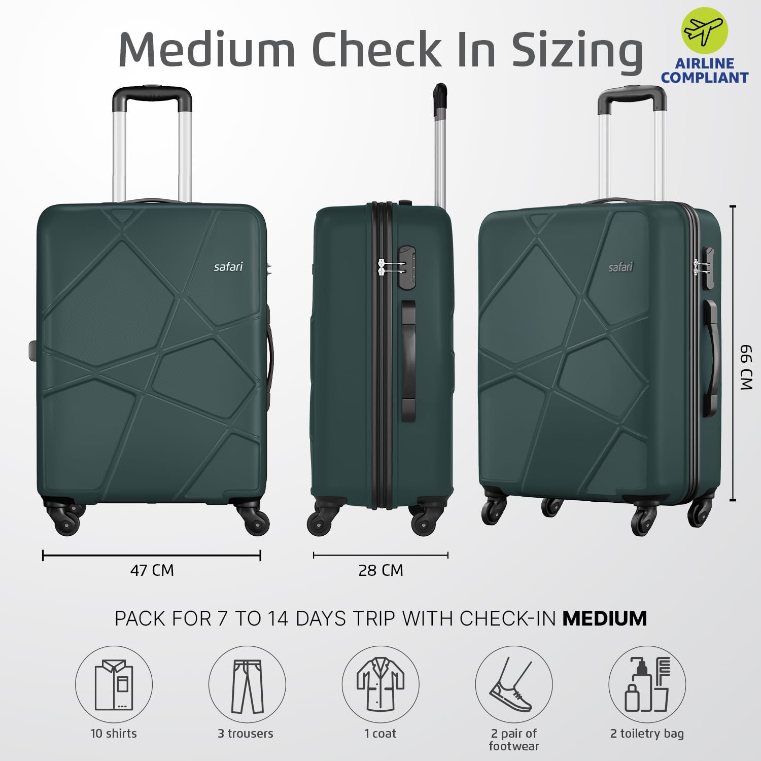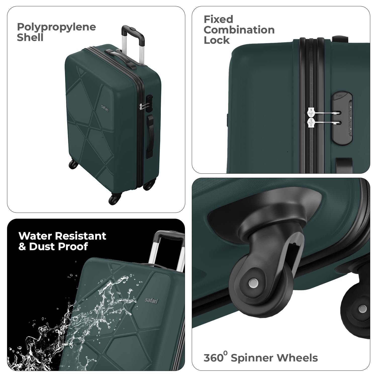 Safari Medium Pentagon 65cm Checkin Trolley Bag Hard Case Polypropylene 4 Wheels 360 Degree Wheeling System Luggage, Travel Bag, Suitcase for Travel, Trolley Bags for Travel, Dusk Green