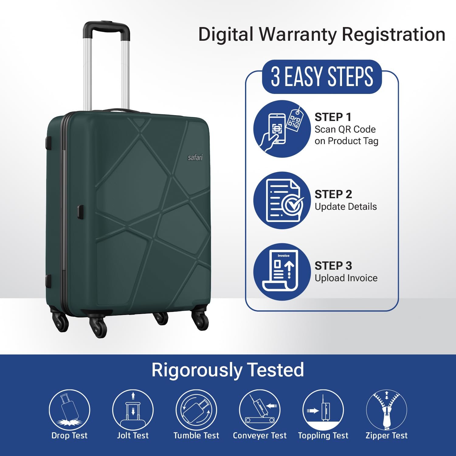Safari Pentagon is the perfect blend of style, durability and convenince for today’s traveler. Crafted from high grade impact resistant Polypropylene material, this trolley bag is designed to withstand the rigors of modern travel. The multi-stage trolley system with 360 degree spinner wheels offers effortless maneuverability. Navigate tight spaces and sharp corners with ease, making your travel experience smoother. The spacious interior is desgined for organized packing. Ideal for business trips, vacations and adventures, this suitcase accommodates all your essentials with ease. The 3 digit combination lock makes sure your belongings are safe. The 3 year international Warranty ensures we have got you covered on all your trips.