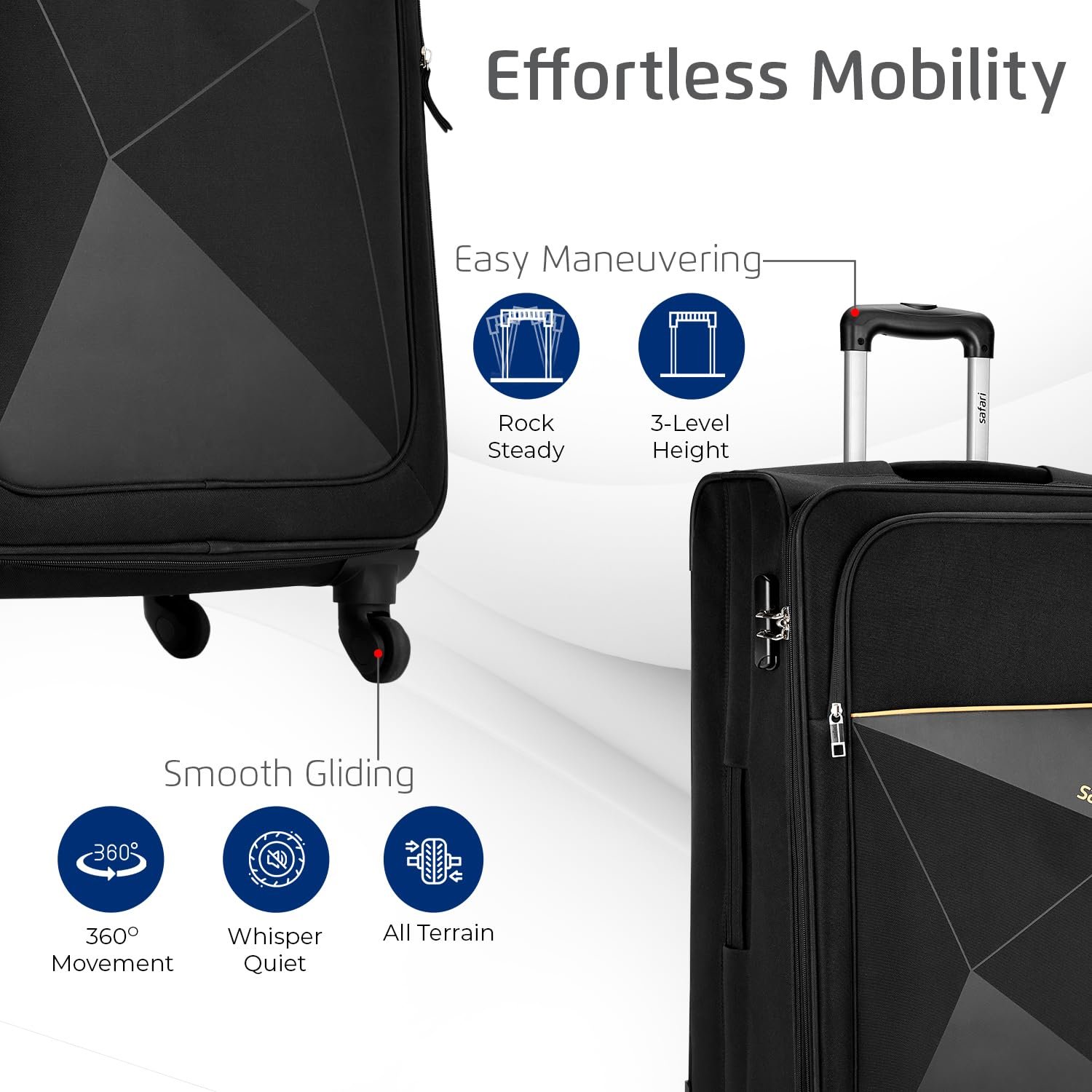 Premium Polyester Material: Crafted from high-grade polyester fabric for a lightweight yet durable body that withstands the rigors of modern travel