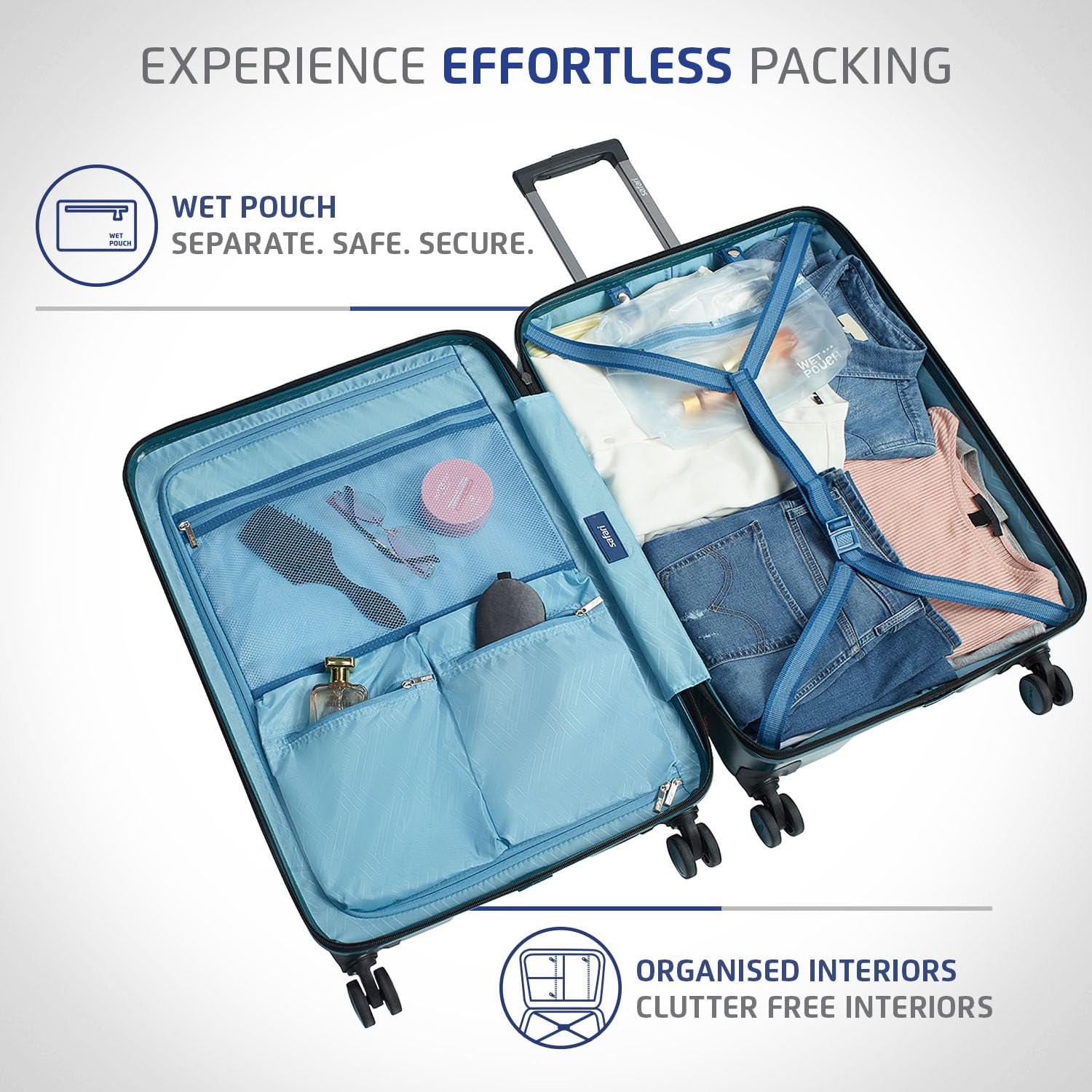 Efficient Organizer: Pack more, pack better with multiple compartments and pockets for smart storage, along with compression straps that maximize space and keep your belongings secure. Comes with a internal wet pouch for neat and hassle-free packing and unpacking.
