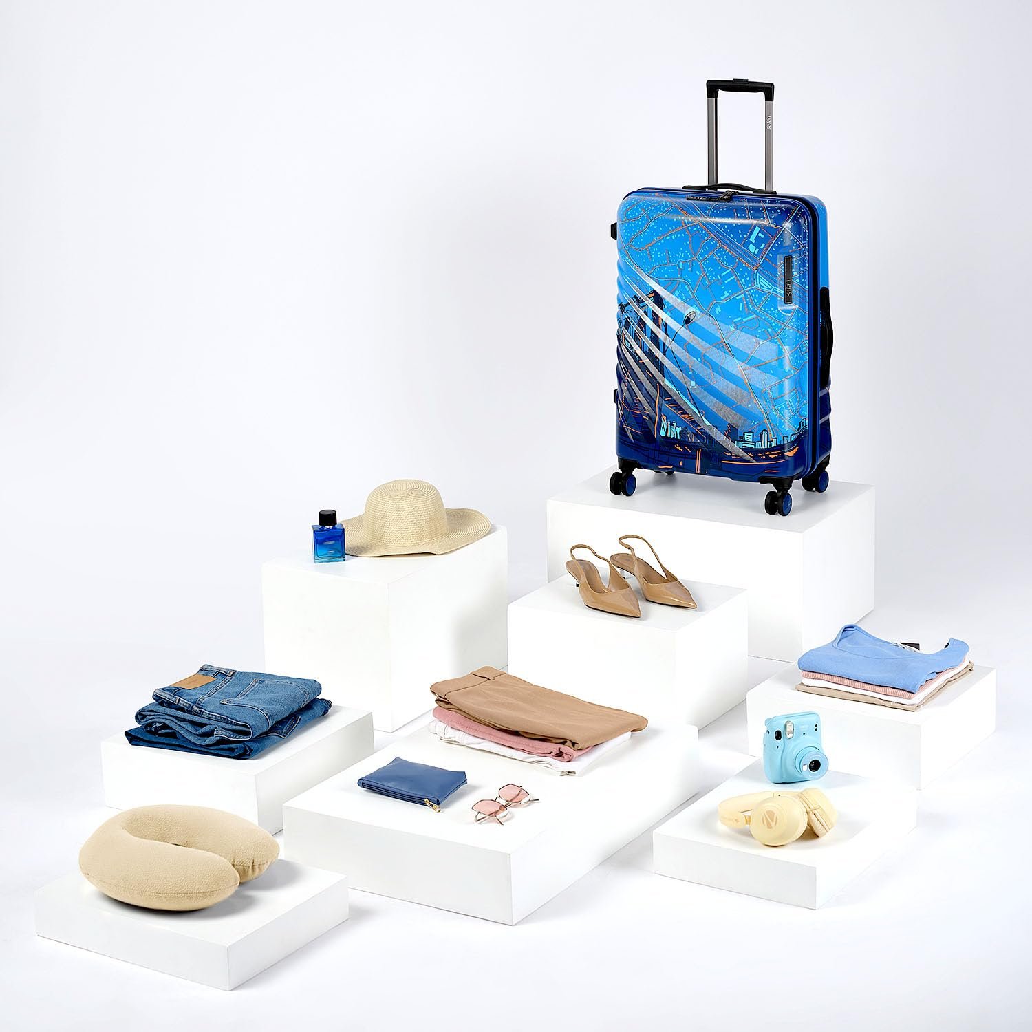 Safari Select Brooklyn 66 Cms Check-in Trolley Bag Hard Case Polycarbonate 8 Wheels with 360 Degree Rotation, Recessed TSA Lock, Anti-Theft Zipper, Trolley Bags for Travel, Suitcase for Travel, Blue