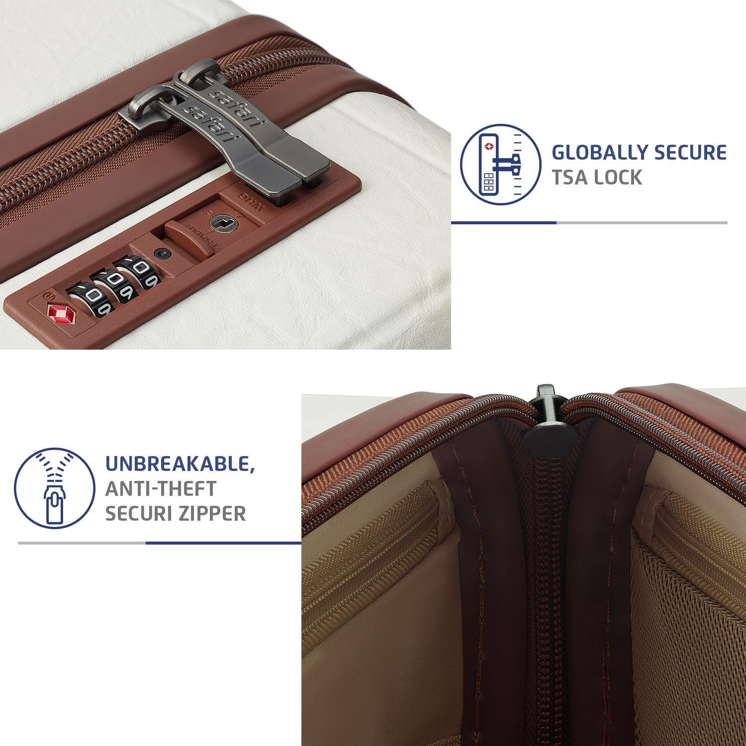 Safari Select Heritage 66 Cm Medium Check in Polycarbonate Hard Case Trolley Bag with TSA Lock, 8 Wheels with 360 Degree Rotation and Anti-Theft Zipper, Luggage Bag Suitcase for Travel, Ivory