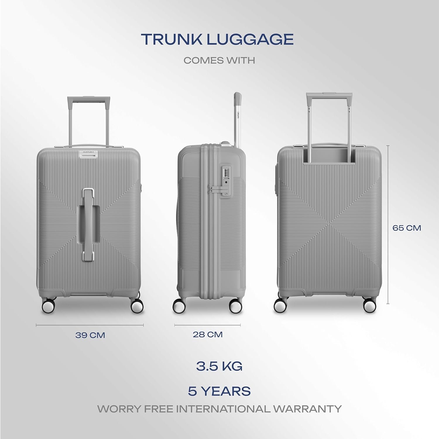 Safari Select Trunk 65 Cm Medium Check in Hard Shell Trolley Bag with TSA Lock, Dual 8 Wheelss with 360 Degree Rotation and Anti-Theft Zipper, Luggage Bag, Suitcase for Travel, Grey