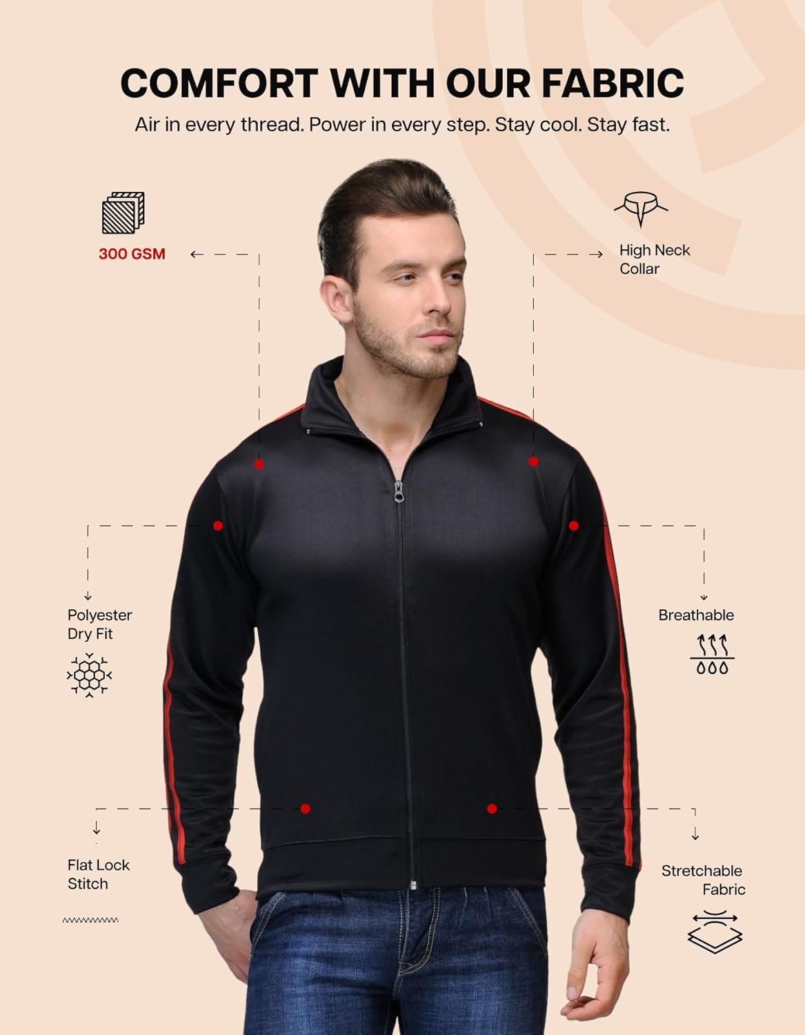 Elevate your wardrobe with this premium polyester jacket, expertly designed to deliver comfort, durability, and style. Made from high-quality polyester, the jacket is lightweight, wrinkle-resistant, and built to maintain its shape even with everyday wear. Its breathable fabric ensures all-day comfort, making it perfect for casual outings, sports, travel, or daily activities. Thoughtfully designed for functionality, it features a smooth zipper closure, secure side and hidden pockets, and elastic cuffs and hem for a snug, wind-resistant fit. The sleek, modern design available in classic or trendy stripe patterns offers a stylish, sporty, and versatile look that pairs effortlessly with jeans, joggers, or trousers.Maintenance is effortless, as the jacket is machine washable, quick-drying, and fade-resistant, retaining vibrant color and soft texture even after multiple washes. Its lightweight, packable, and travel-friendly design makes it an essential layer for all seasons, providing warmth on cooler days and comfort during mild weather. Ideal for men seeking a combination of style, practicality, and long-lasting performance, this polyester jacket is a wardrobe essential that seamlessly blends fashion and functionality for everyday life.