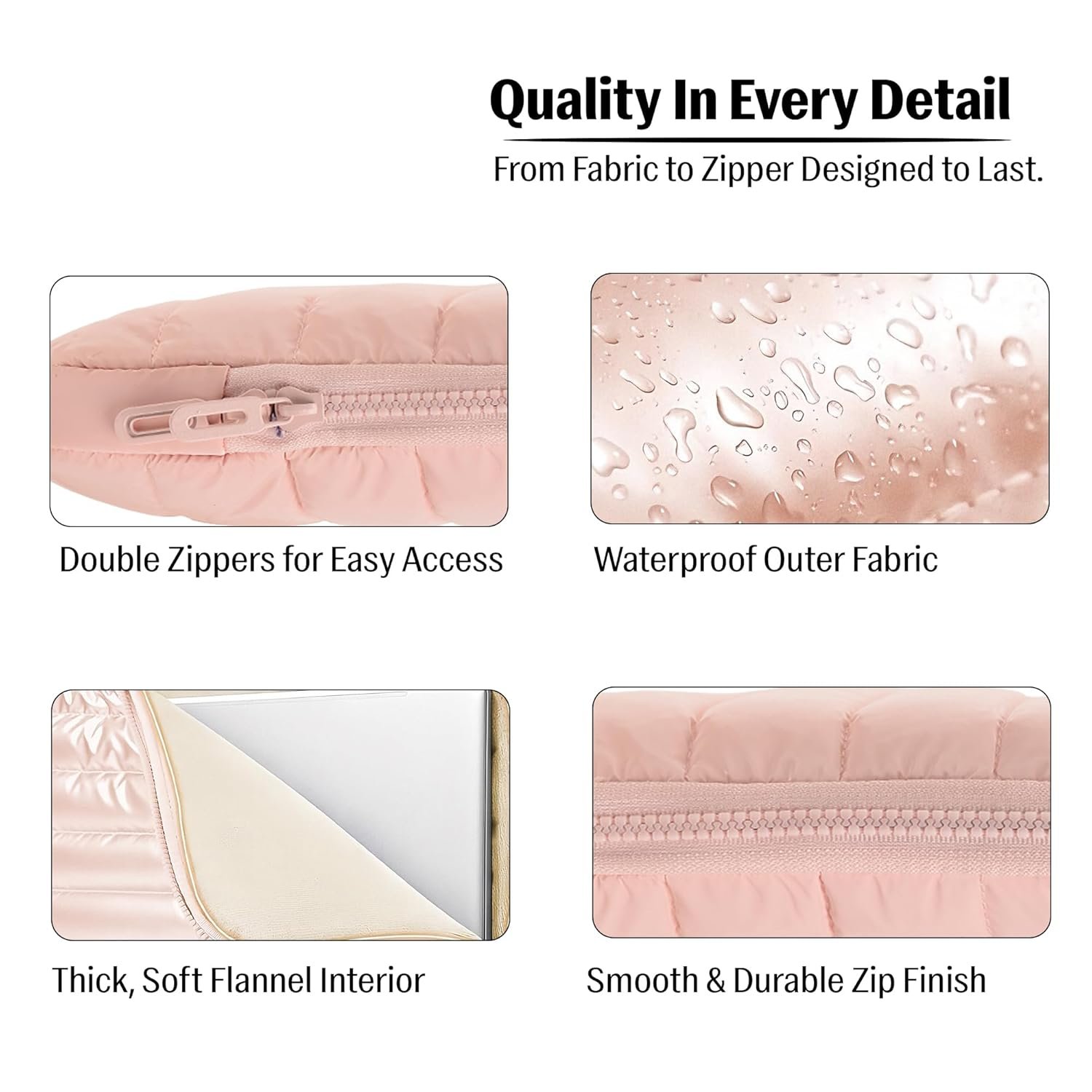 Waterproof & Stylish Outer Fabric : Crafted with a highly durable, waterproof exterior, this sleeve safeguards against unexpected spills, rain, or dust while maintaining a classy, quilted pink design. Not only does it enhance device safety wherever you go, but it also brings contemporary style to your work or study accessories, complementing any handbag or backpack