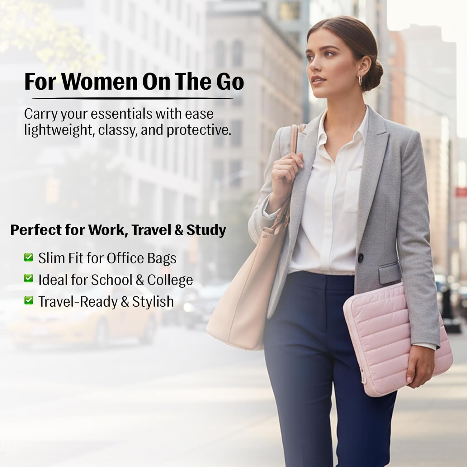 Lightweight, Slim & Travel-Ready : Designed for women on the go, this slim, lightweight sleeve slides easily into totes, office bags, or backpacks. Ideal for daily work, college, or travel needs, it blends seamless portability with chic style, so you always look polished and professional while carrying your valuable device safely