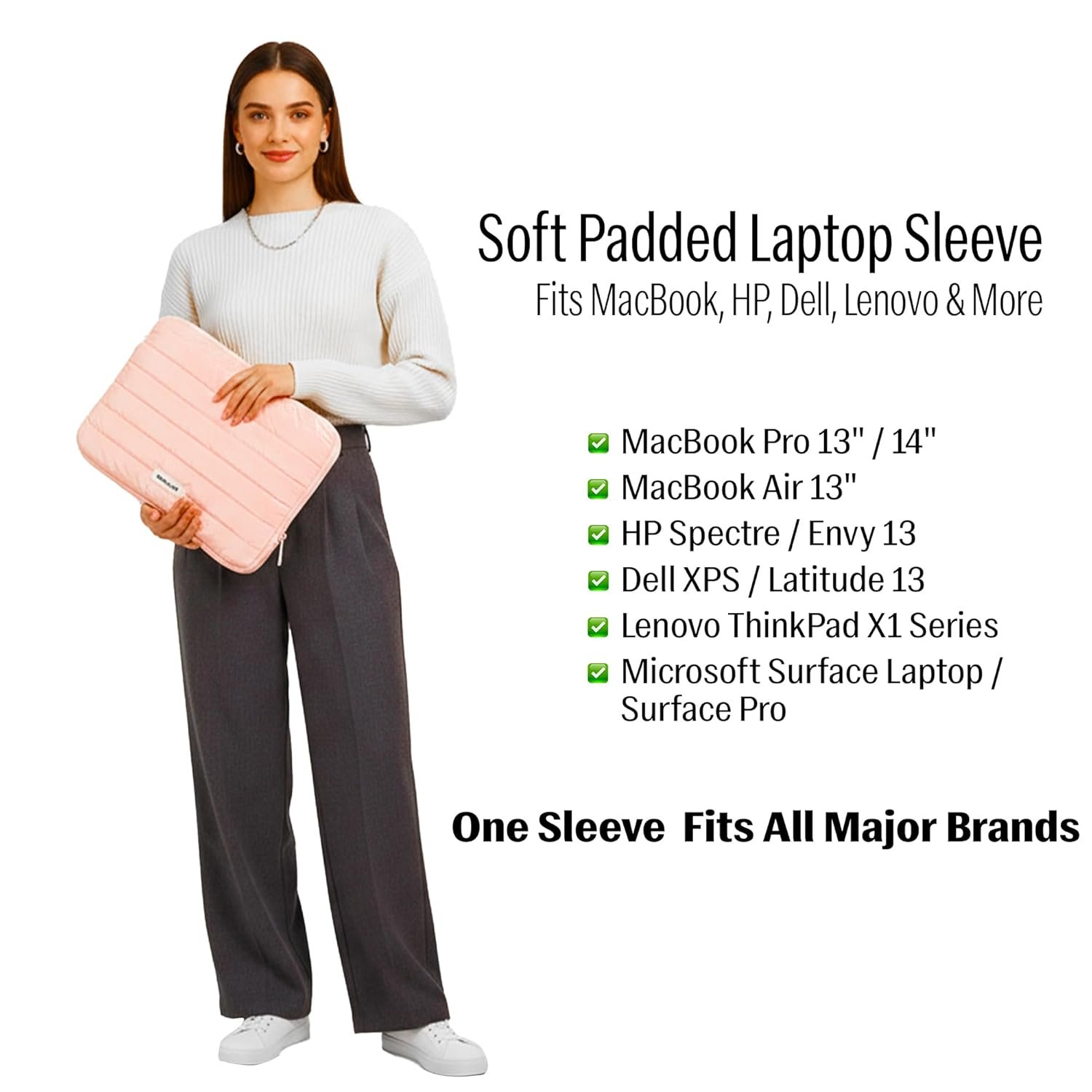 Multi-Brand Universal Compatibility : Perfectly sized for 13-15 inch laptops, this sleeve fits all leading brands—MacBook Pro/Air, HP Envy/Spectre, Dell XPS/Latitude, Lenovo ThinkPad X1, and Microsoft Surface. Purchase with confidence, knowing your premium gadget will fit perfectly, eliminating guesswork for busy professionals and students