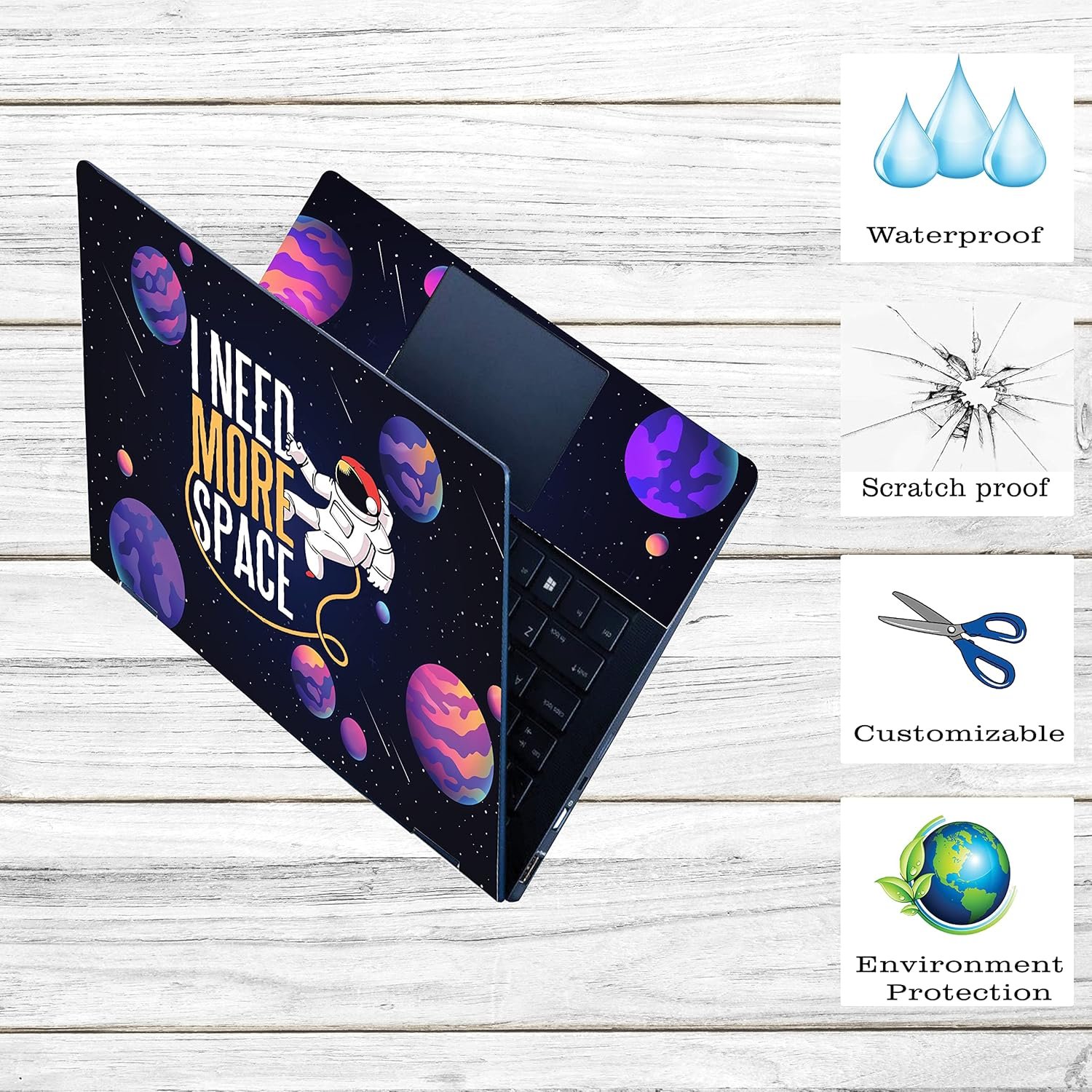 Inkykart Space D11 Top+Wrist Pad Vinyl Laptop Skin/Sticker/Cover for 13 to 13.3 Inches Laptops Laminated-Removable-HD Quality Compatible for Hp-Dell-Sony-Lenovo-Asus etc