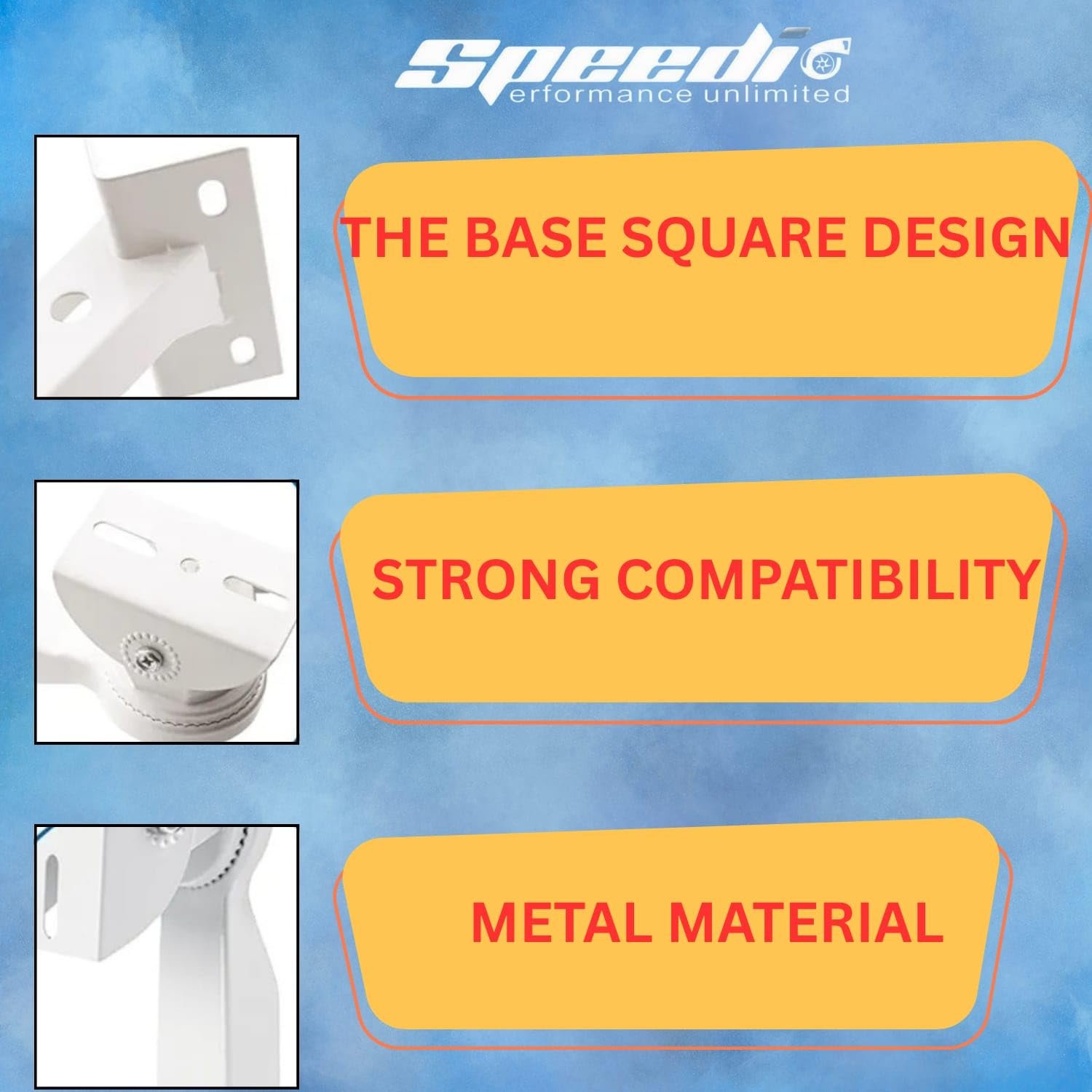 Designed with a wide square base for superior stability, this mount offers a firm grip on any surface — whether on walls or poles. Multiple pre-drilled holes ensure secure and hassle-free installation.