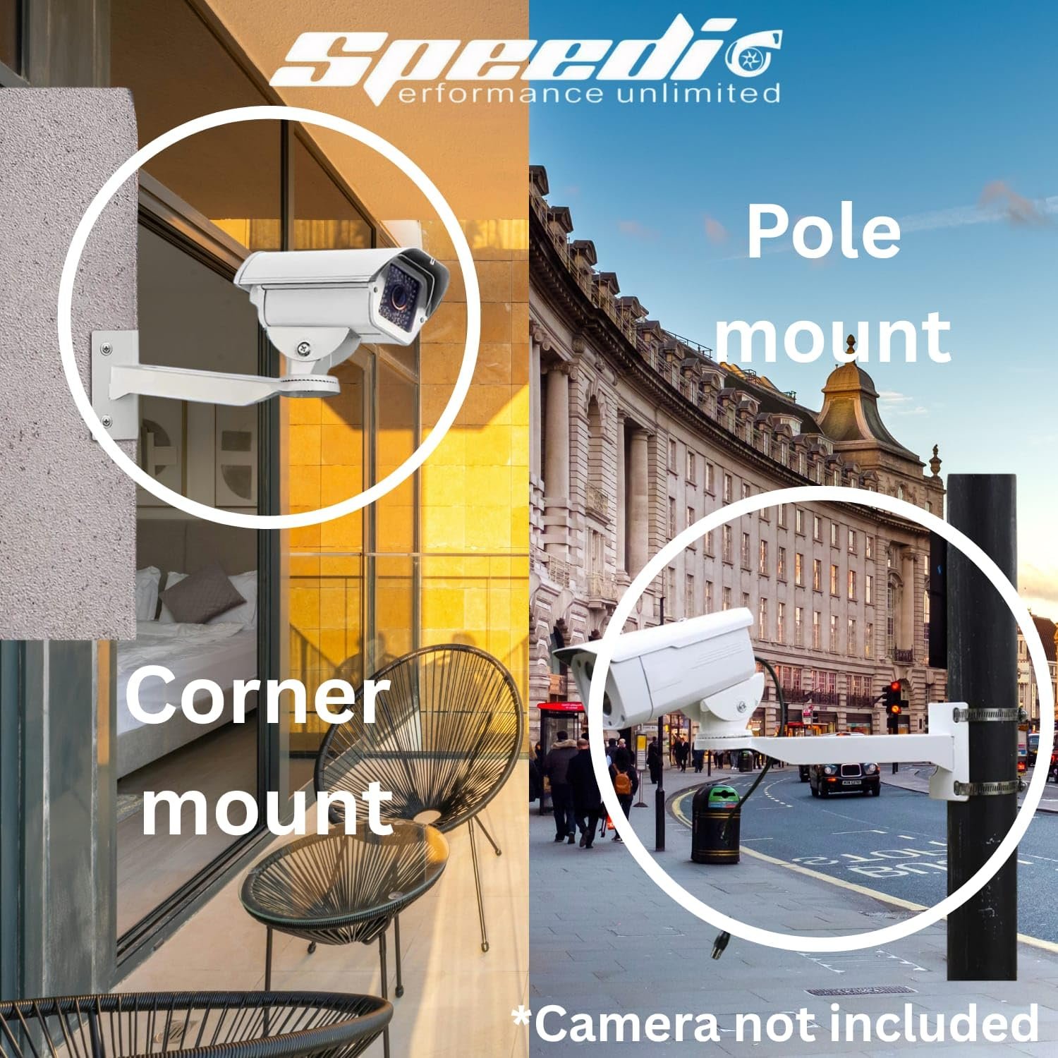 ▲ Universal Compatibility: Camera Mount Pole Bracket Adjustable- Speedio I Shape Stand’s bracket offers versatile mounting options for indoor and outdoor CCTV or IP cameras, including corners and near windows