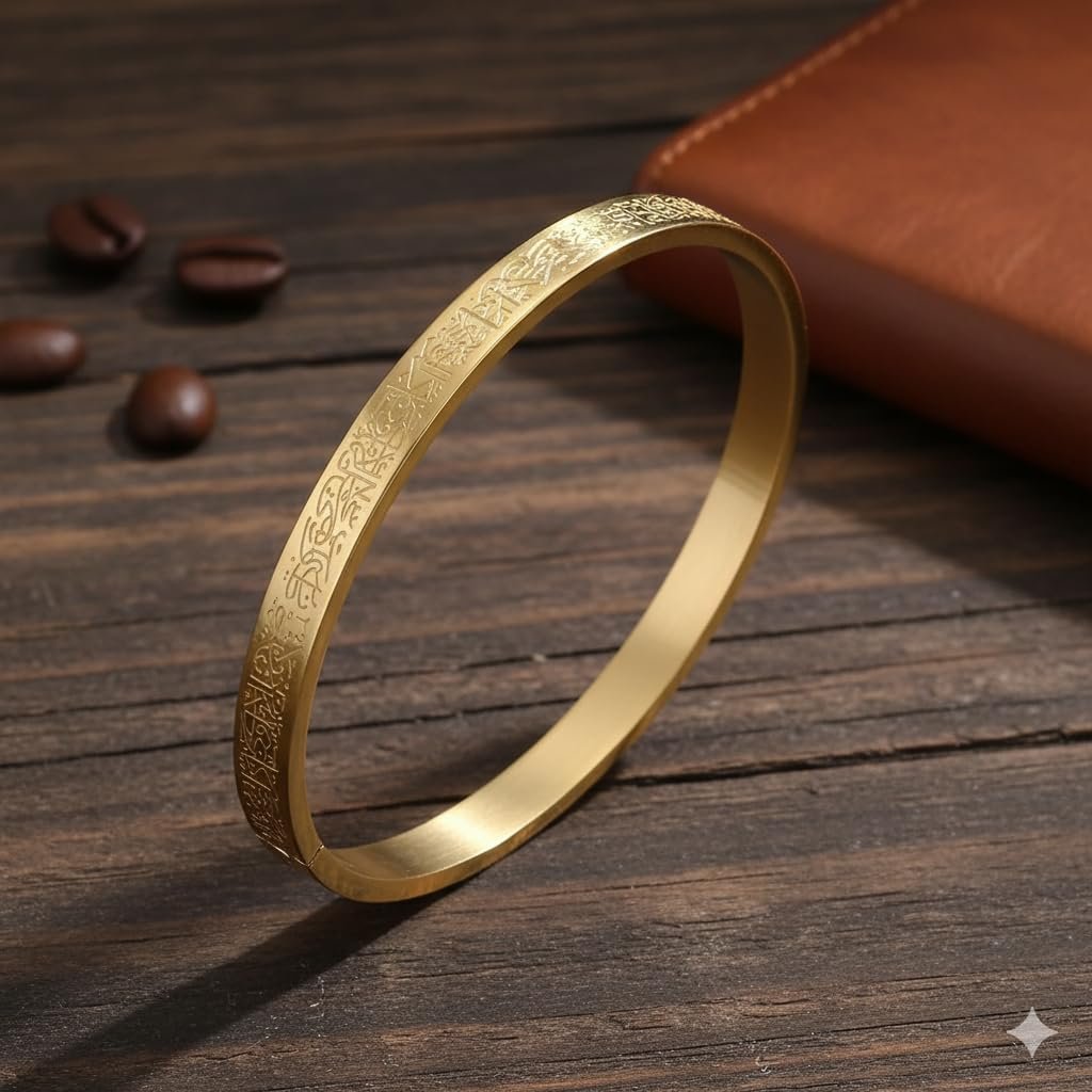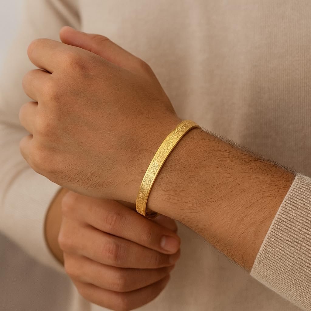 This Stylish Dual-Tone Link Chain Bracelet for Men is a versatile accessory that can be worn with a range of different styles and looks. The dual-tone link chain design in silver and gold tones adds a touch of sophistication to any outfit, making it perfect for both casual and formal occasions. The secure clasp ensures a comfortable and secure fit, making it a great choice for everyday wear. stainless steel. Add a touch of faith and elegance to your style with this Ayatul Kursi Engraved Bracelet crafted from premium stainless steel. Featuring a beautifully carved Quranic inscription of Ayatul Kursi on a round double-sided pendant, this bracelet is a perfect blend of spirituality and fashion. Its durable stainless steel design ensures long-lasting wear, making it an ideal piece for daily use, special occasions, or as a meaningful gift for loved ones. Suitable for men of all ages, this Islamic bracelet reflects devotion, protection, and timeless style.