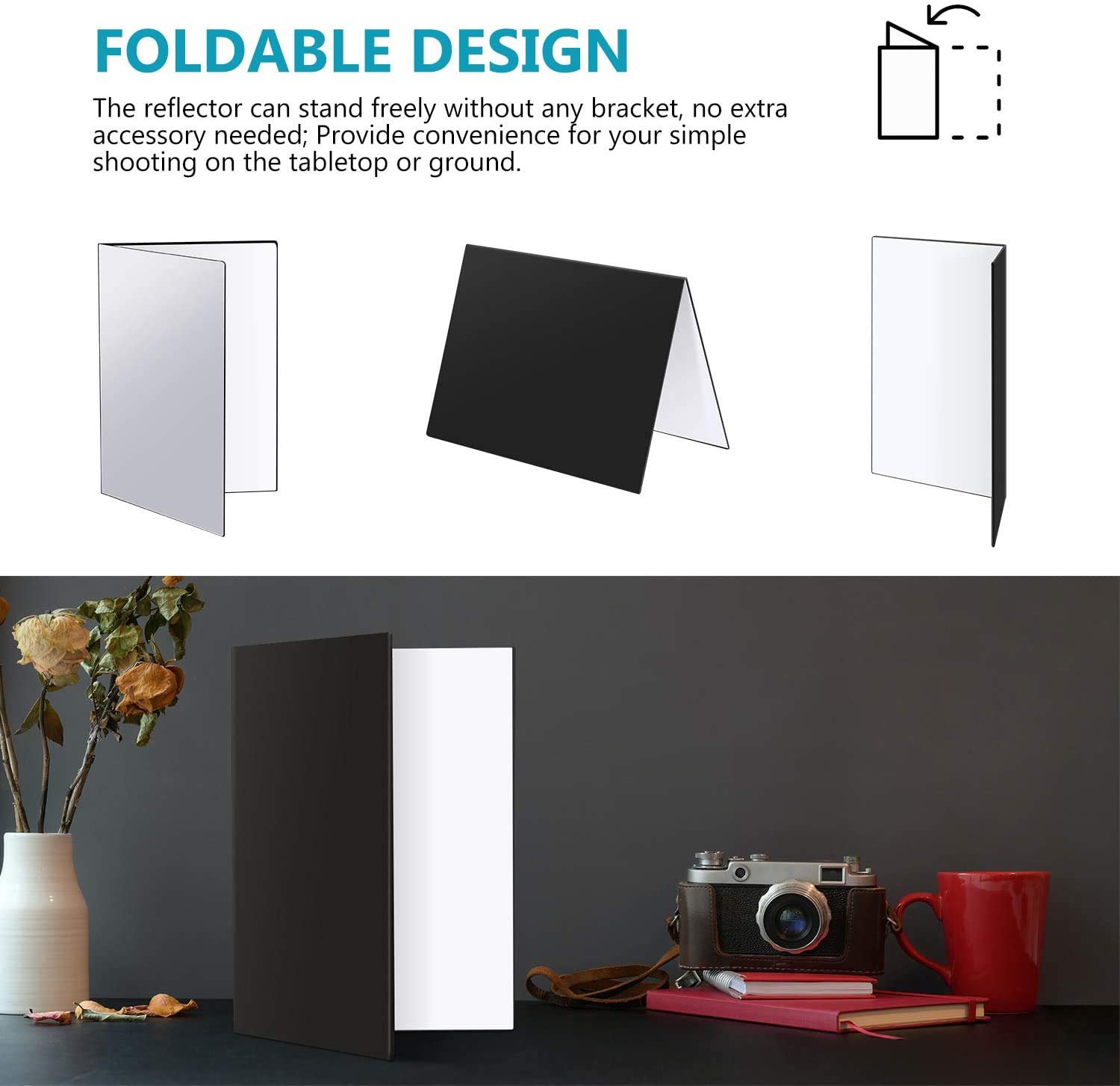 Foldable Design: Can stand freely without any bracket, you can complete simple shooting by the lighting reflector