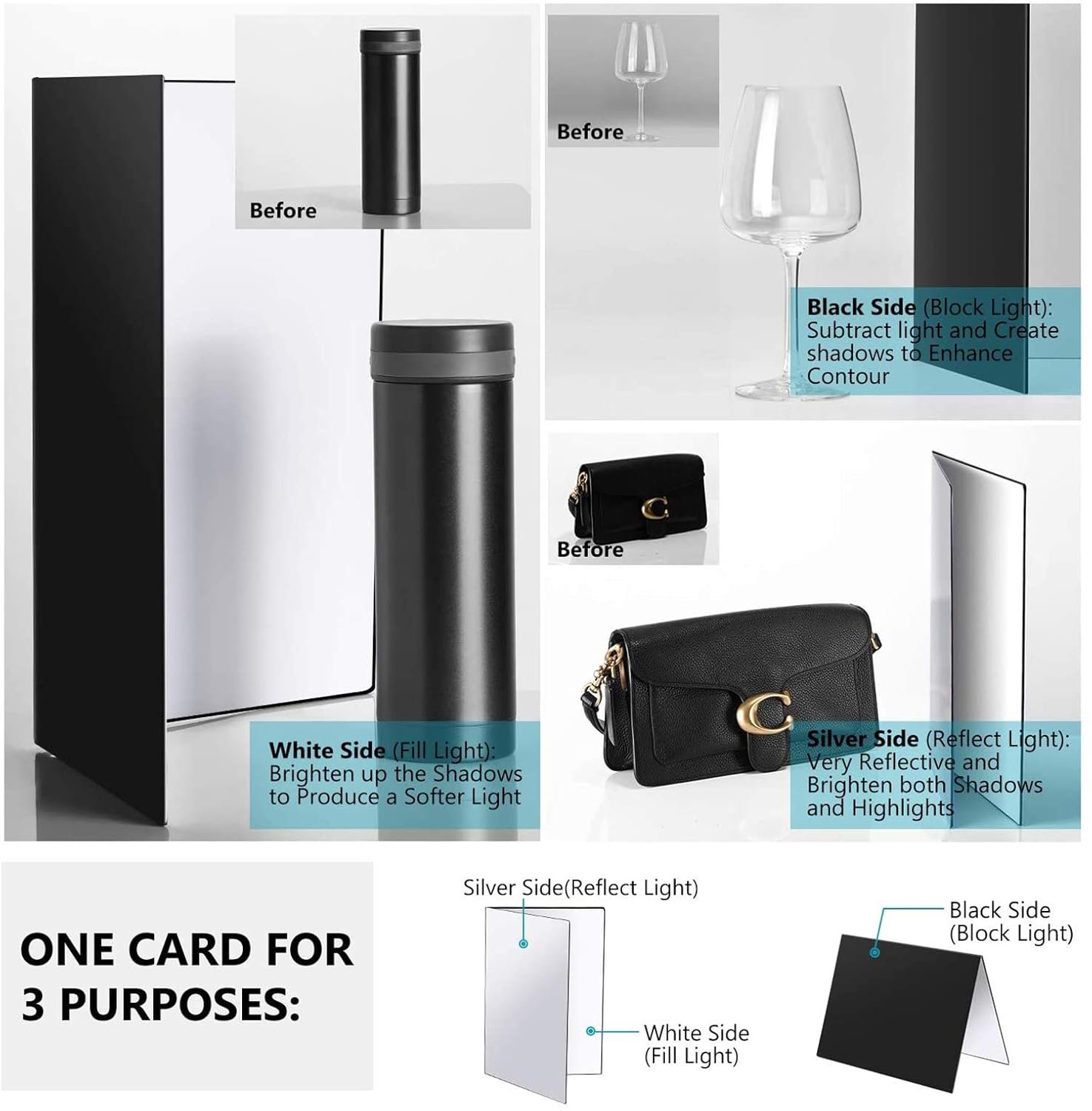 Cardboard Material: 0.1inch thickness photography reflector board, lightweight and portable than traditional reflector. Also thick than photographic paper