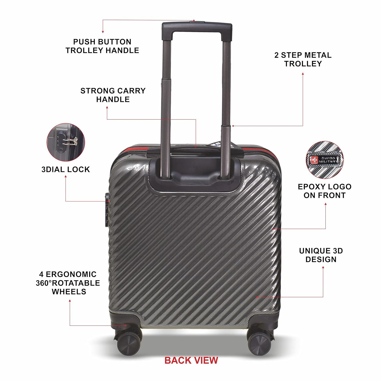 Swiss Military Combo of (LTB8_LBP91) 39L Laptop Overnighter Trolley & 17L Laptop Backpack Cum Sling Bag with Combination Lock, Hard-Sided ABS Cabin Size with 360° Wheels,15.4″ Laptop Compartment