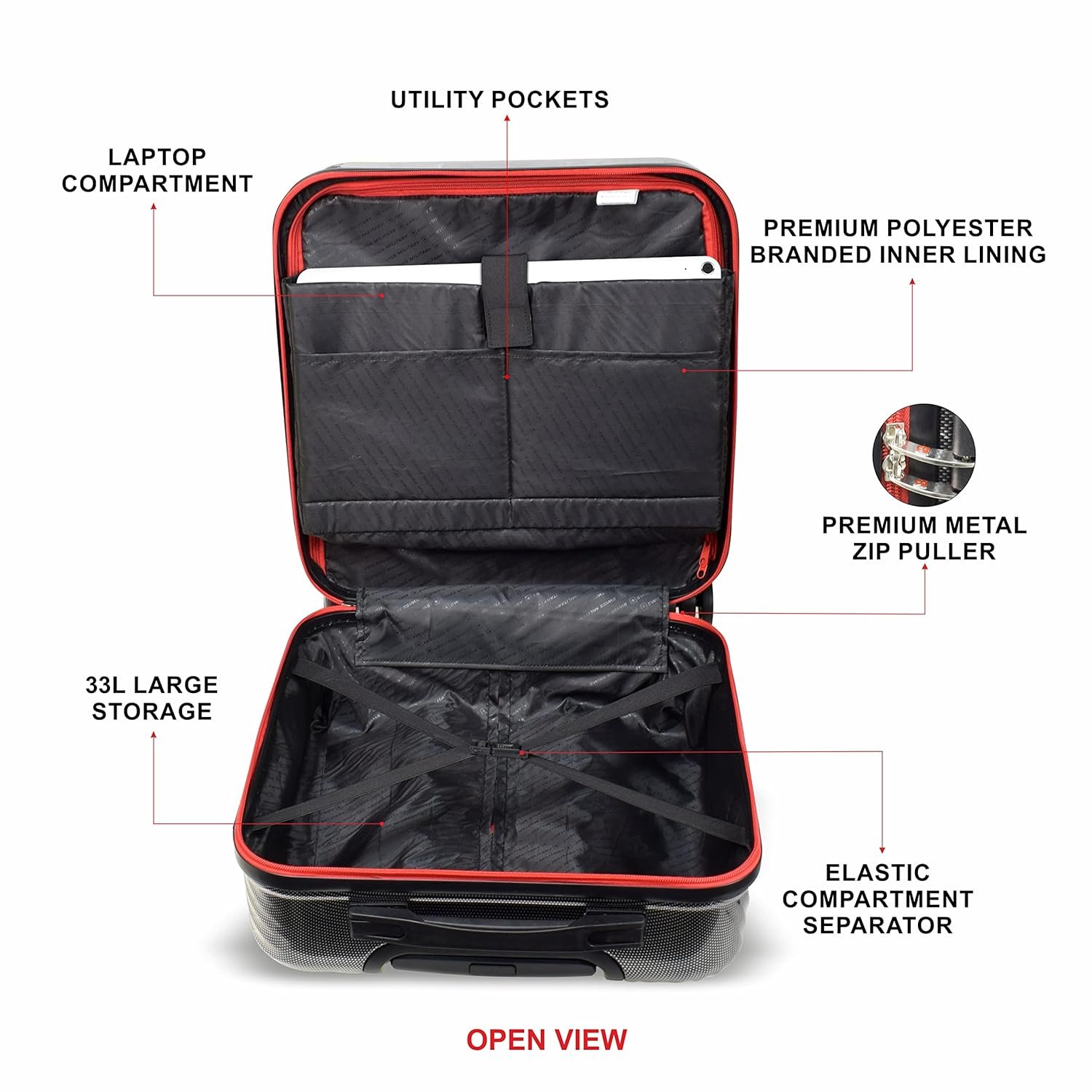 Smooth Maneuverability: Travel effortlessly with 360° rotatable ergonomic wheels on the hard trolley. Navigate tight airport spaces, hotel lobbies, and platforms with complete ease and stability.
