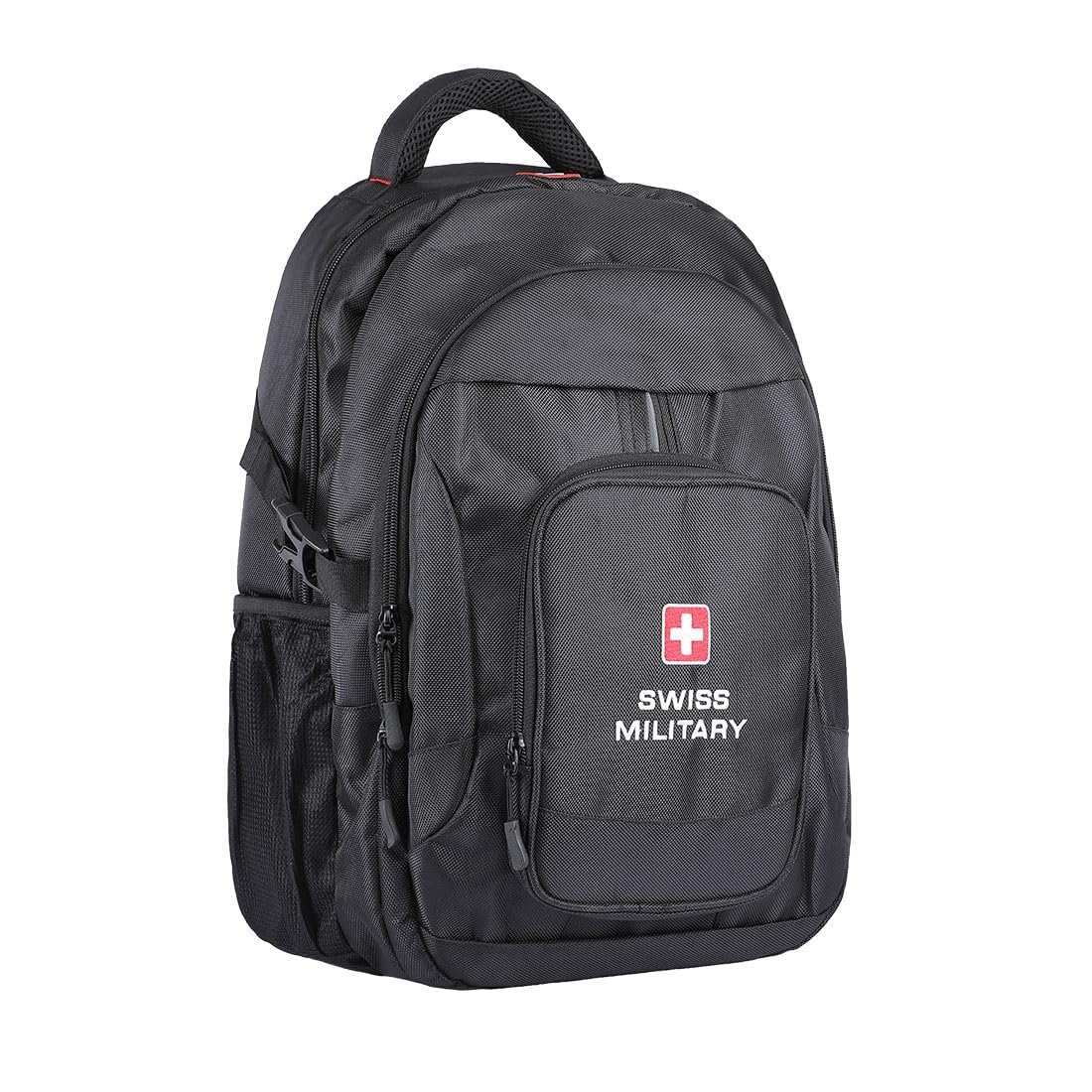 Swiss Military Laptop Backpack: Meet the Swiss Military Laptop Backpack, crafted from durable polyester in a sleek black finish, perfect for the modern adventurer. This wear-resistant and water-resistant backpack is built to withstand daily wear and light rain, keeping your belongings secure. It features a dedicated laptop compartment and multiple pockets for organized storage, while the butterfly lock adds an extra layer of security. Adjustable straps ensure a customized, comfortable fit for extended wear. Ideal for commuting, travel, or daily use, this backpack offers a blend of functionality and style, making it a reliable choice for any journey.