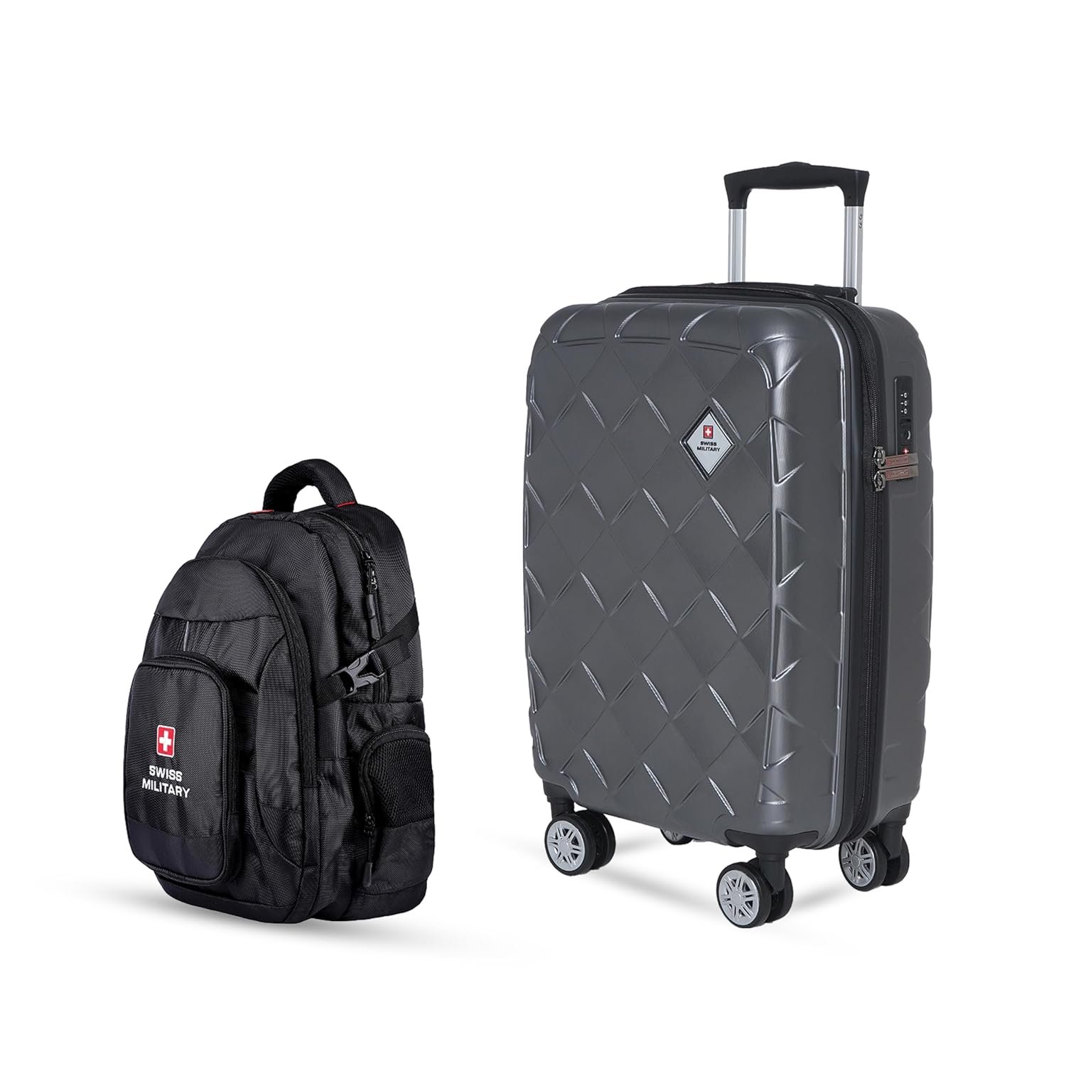 Swiss Military JUPITOR Grey 20 Inch Hardshell Luggage with 8 Wheels, TSA Lock & Laptop Backpack Combo, Black | Water Resistant, Quick Access Pockets, 24L | Travel & Office