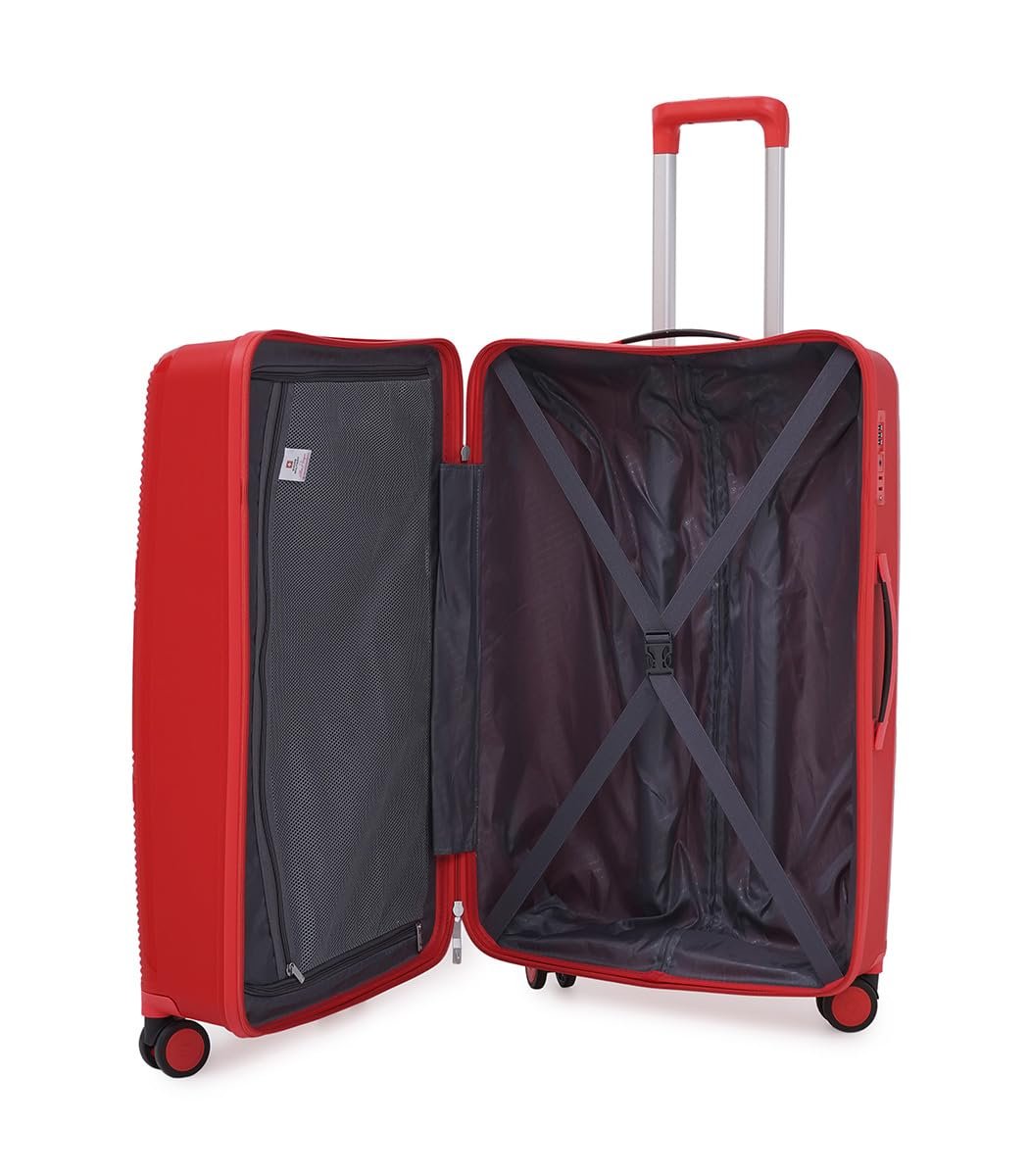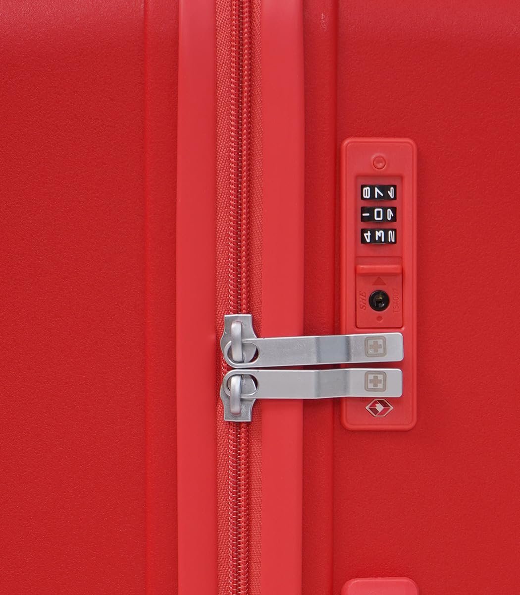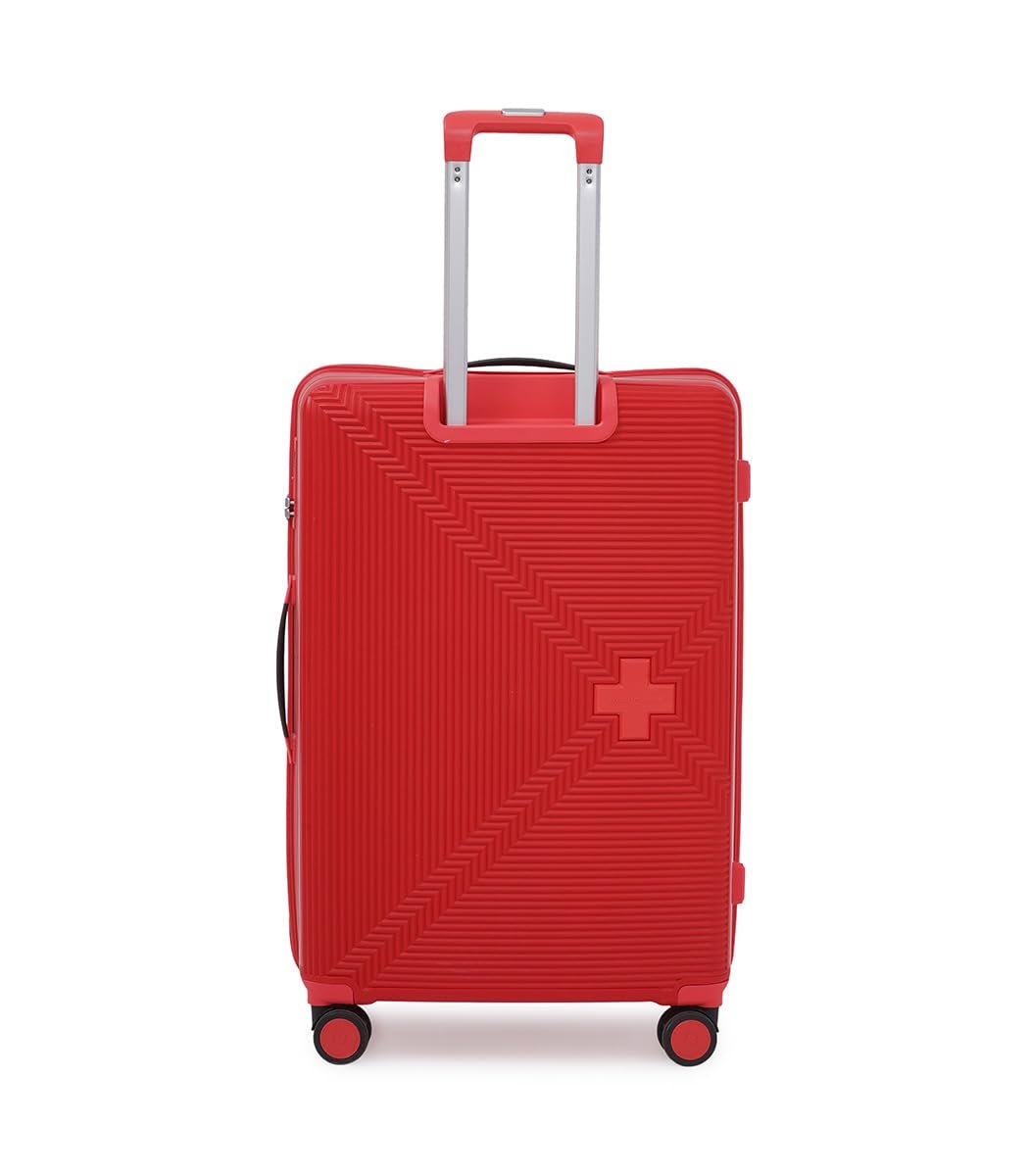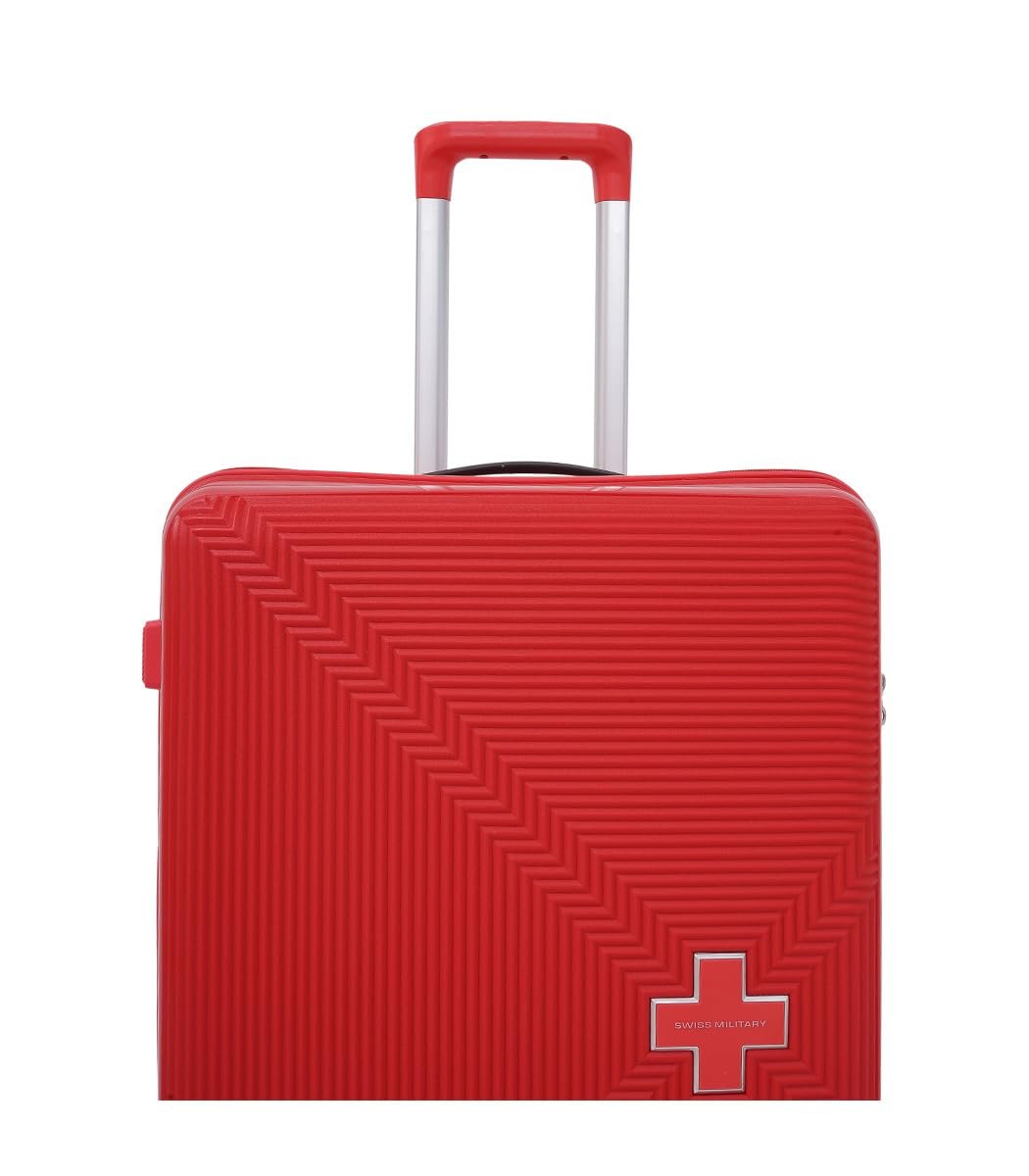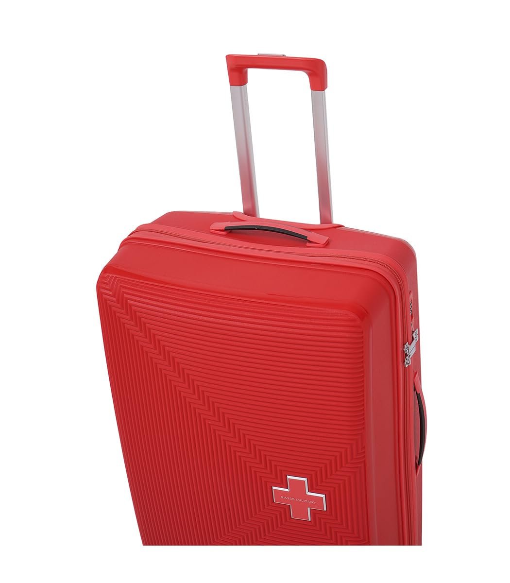 Swiss Military Maze Hard Top Luggage Trolley Bag Set of 3 Combo (Small 55cm, Medium 65cm & Large 75cm) PP Material Travel Suitcase with TSA-Lock & Body Coloured 360 Degree Rotatable 8-Wheels -Red