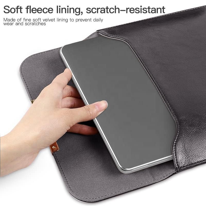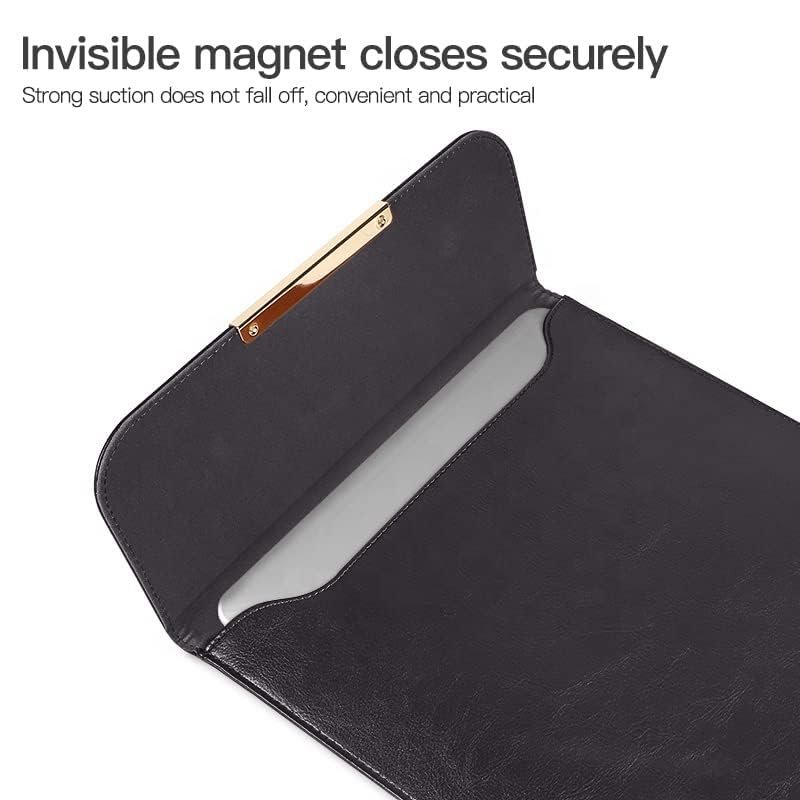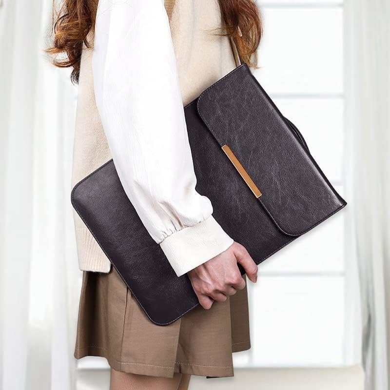 💧 Waterproof & Durable PU Leather: Made from high-quality PU leather, this sleeve resists water, dirt, and scratches – ideal for work, school or travel.