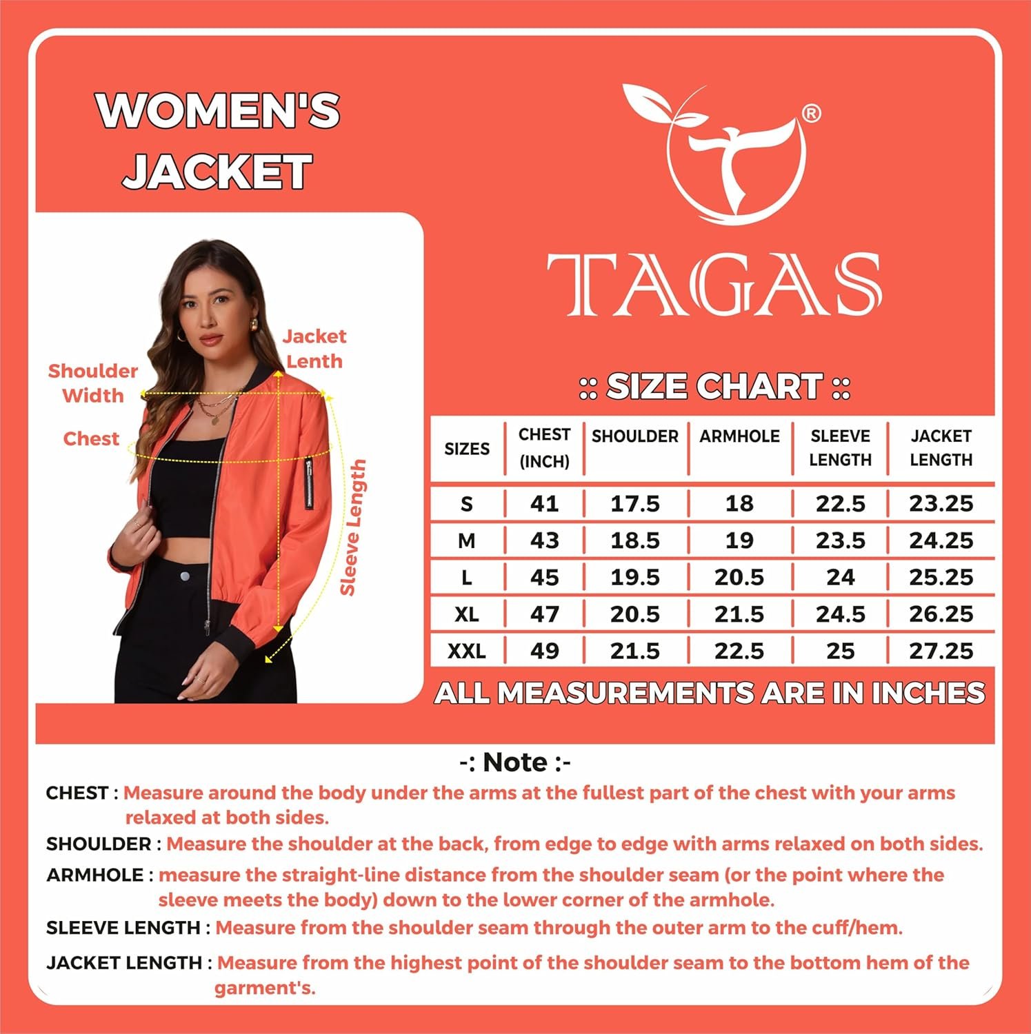 TAGAS Women’s Solid Bomber Jacket – Lightweight Zip-Up Stylish Casual Wear – Full Sleeve Windcheater for Girls & Women