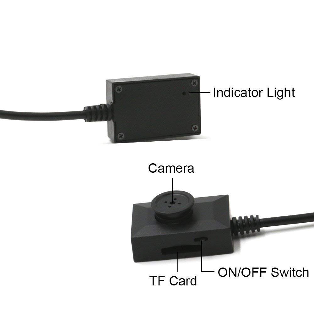 TECHNOVIEW Wired Button Hd Camera Plug and Play Audio Video Recording Support 32GB Sd Card, Work 24 Hours with DC 5V Power – Black