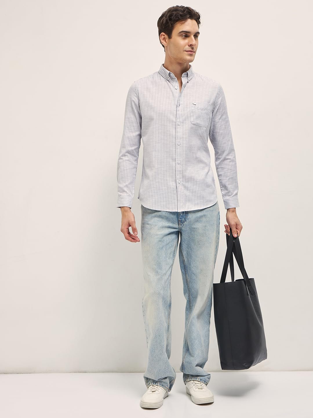 THE BEAR HOUSE Men’s Cotton Checked Slim Fit Shirt