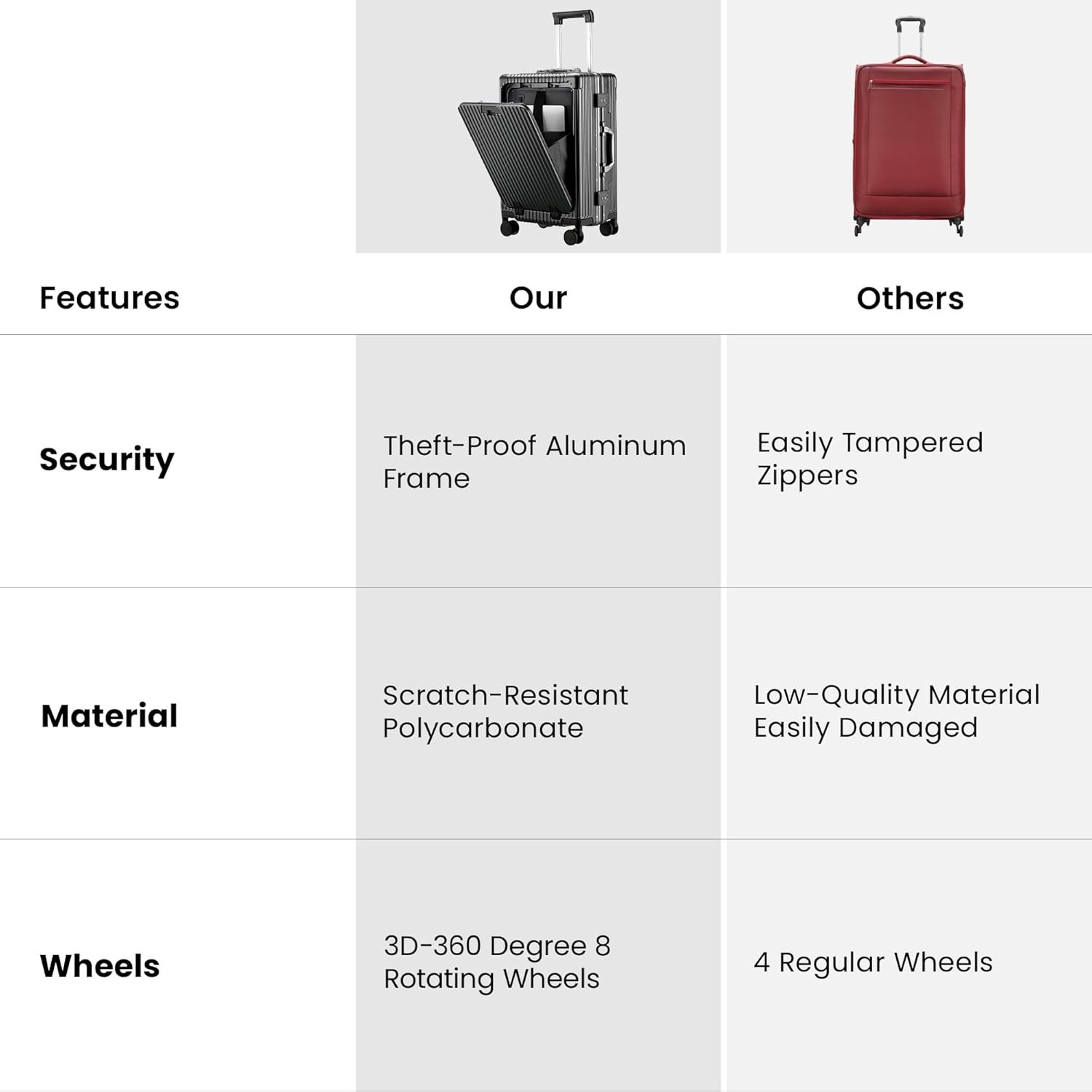 ➧ PREMIUM MATERIAL: The suitcase trolley has been developed in Polycarbonate material with Aluminium frame. The inner lining of this bag is made from durable soft feel polyester material. The suitcase has a stylish design and available in various colors and sizes to suit your preferences.