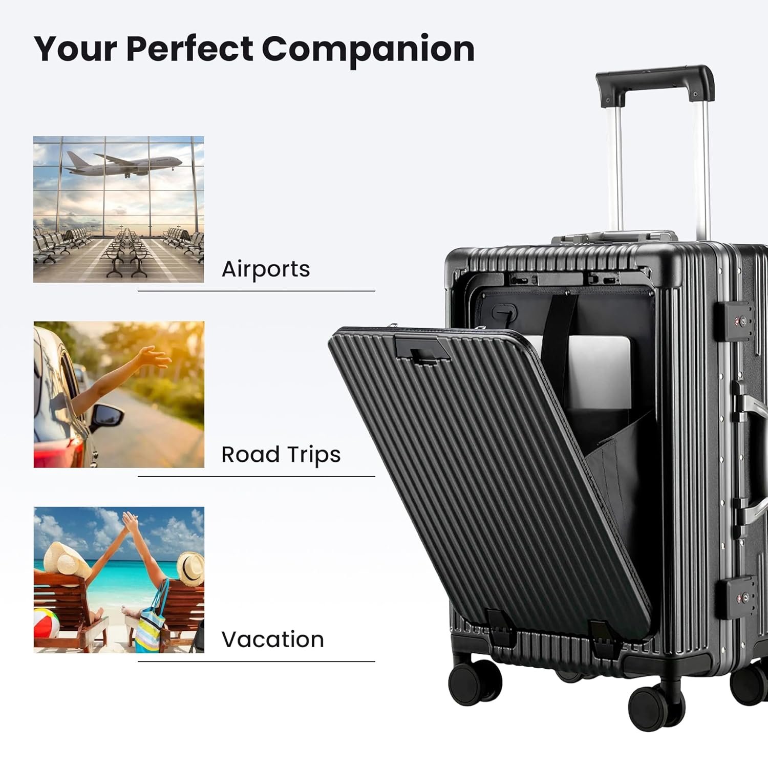 Customers find the suitcase to be a durable and attractive travel companion, with positive feedback about its laptop compartment and charging port features, including a USB port with coffee cup holder. The build quality and looks receive positive reviews. However, customers disagree on the space and value for money aspects, with some finding it spacious while others say it’s limited, and some consider it worth the price while others don’t. The lockability receives mixed feedback, with several customers noting that the key is not provided.