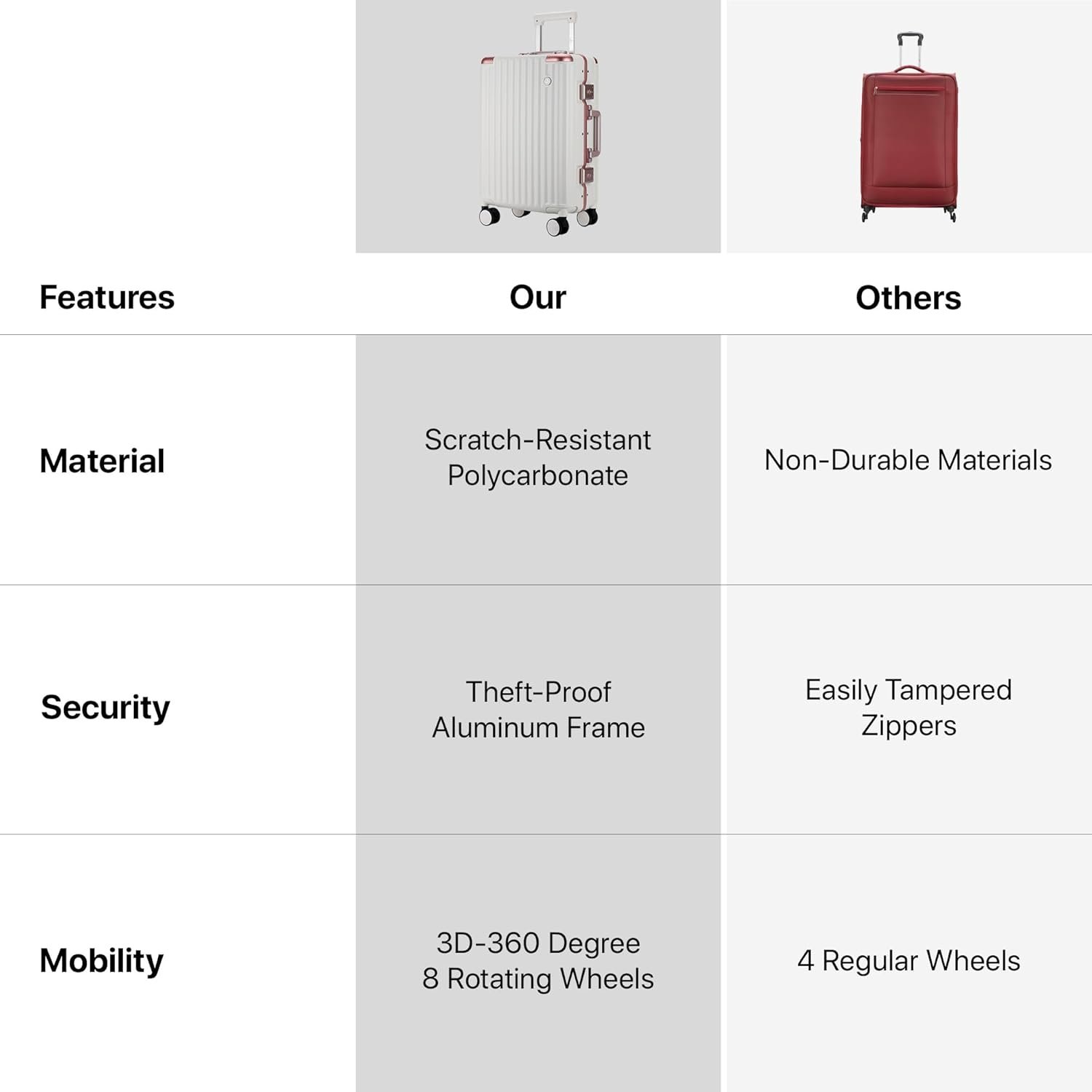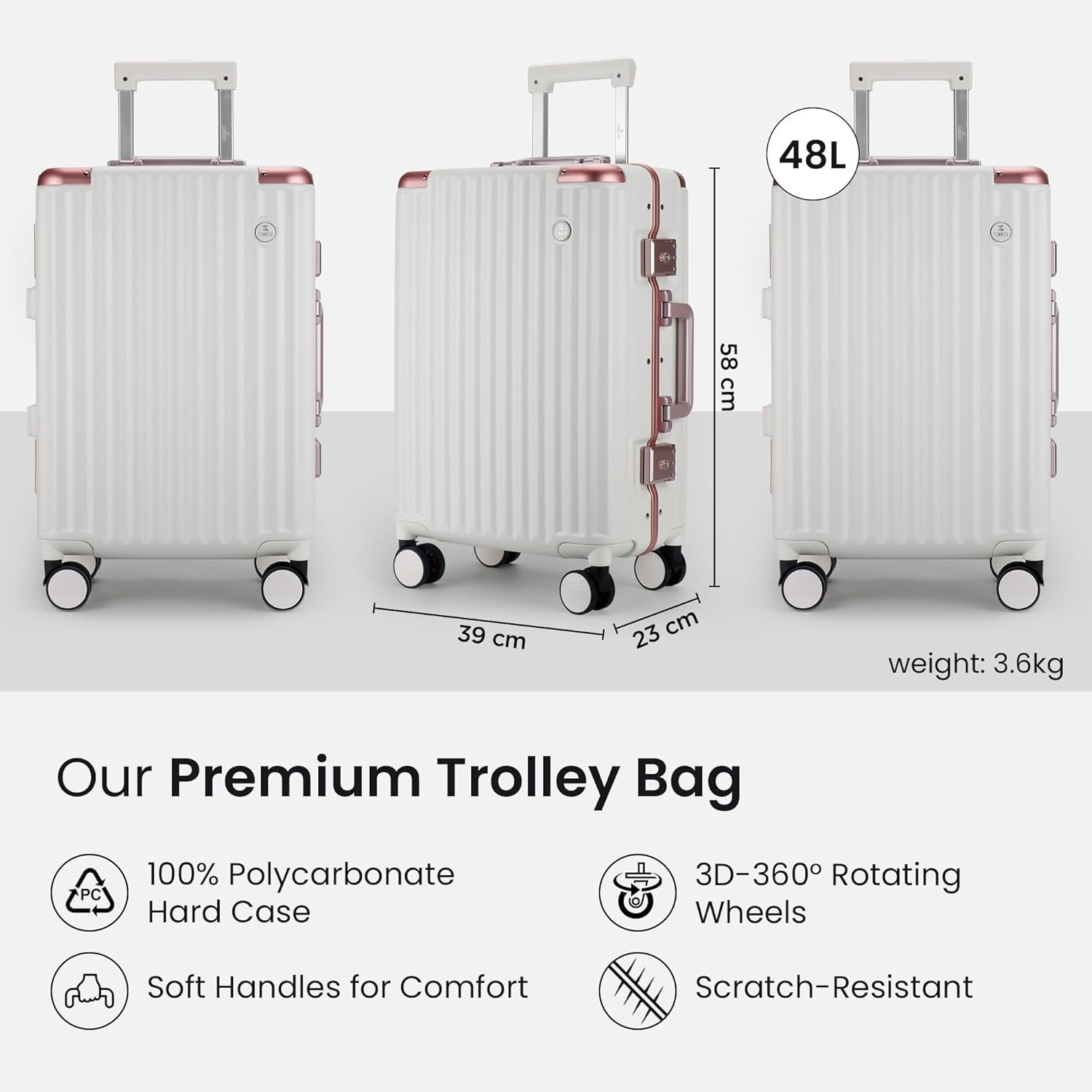 LIGHTWEIGHT: Weighing only 3.6 kg, this suitcase optimizes packing space while keeping you under airline weight limits without losing durability.