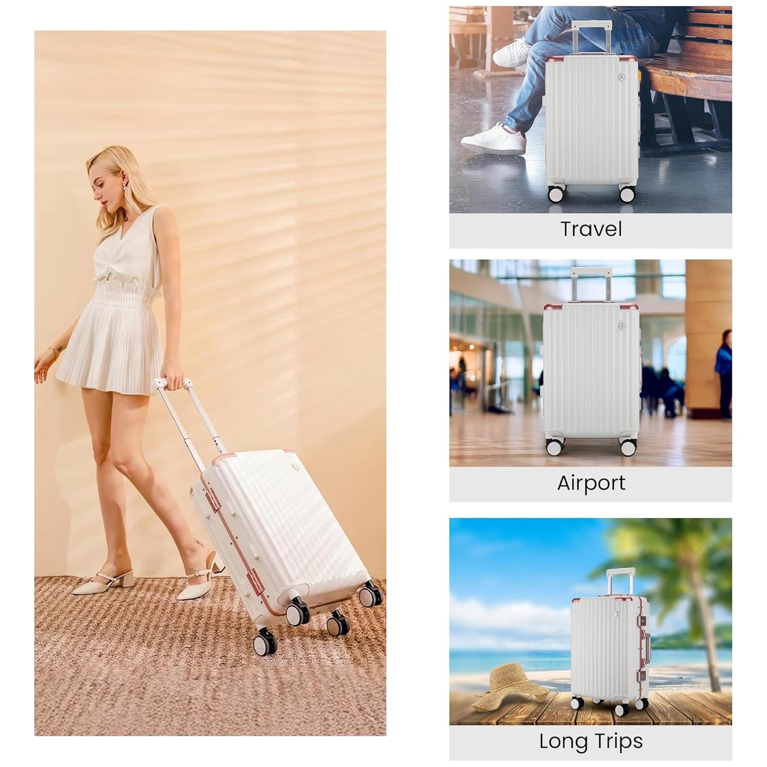 EASY TRAVEL: Experience smooth airport journeys with double spinner wheels and a full aluminum trolley for effortless maneuverability.