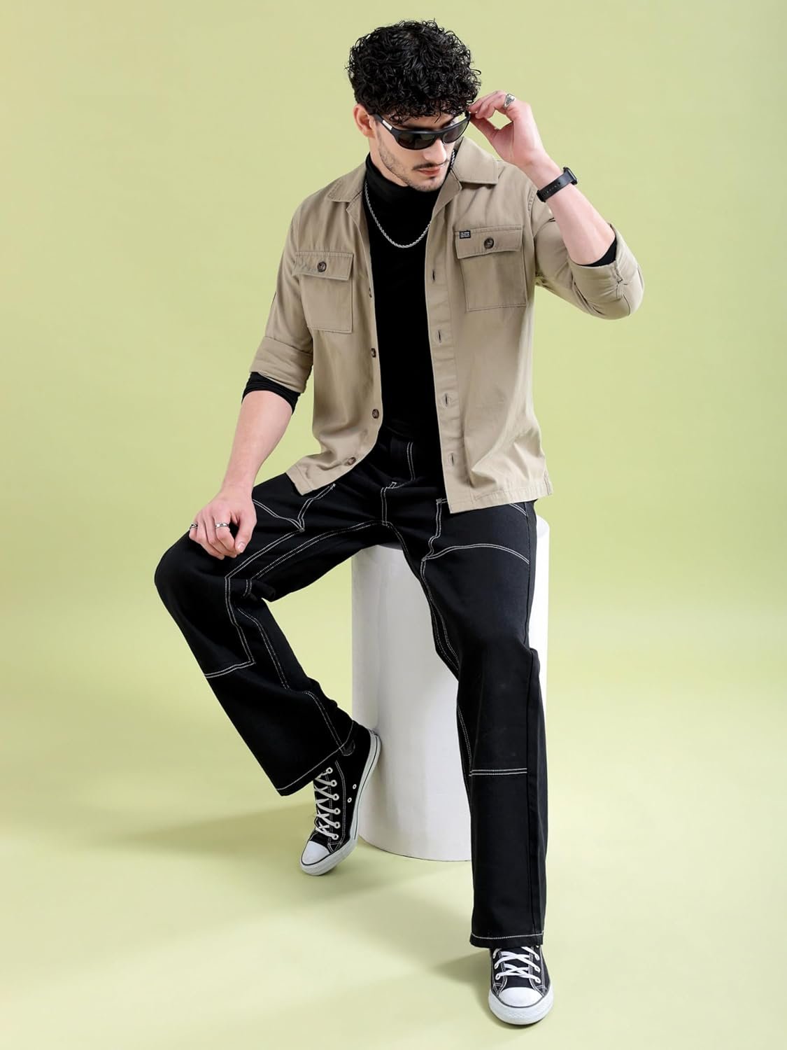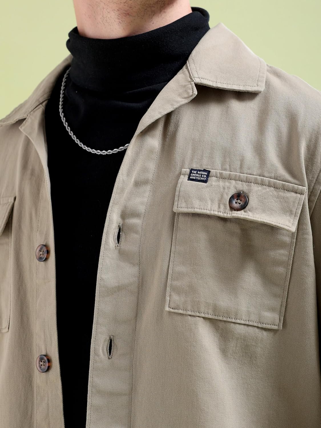 The Indian Garage Co Men’s Cotton Slim Fit Placement Print Full Sleeves Cutaway Collar Double Flap Pocket Casual Over Shirt