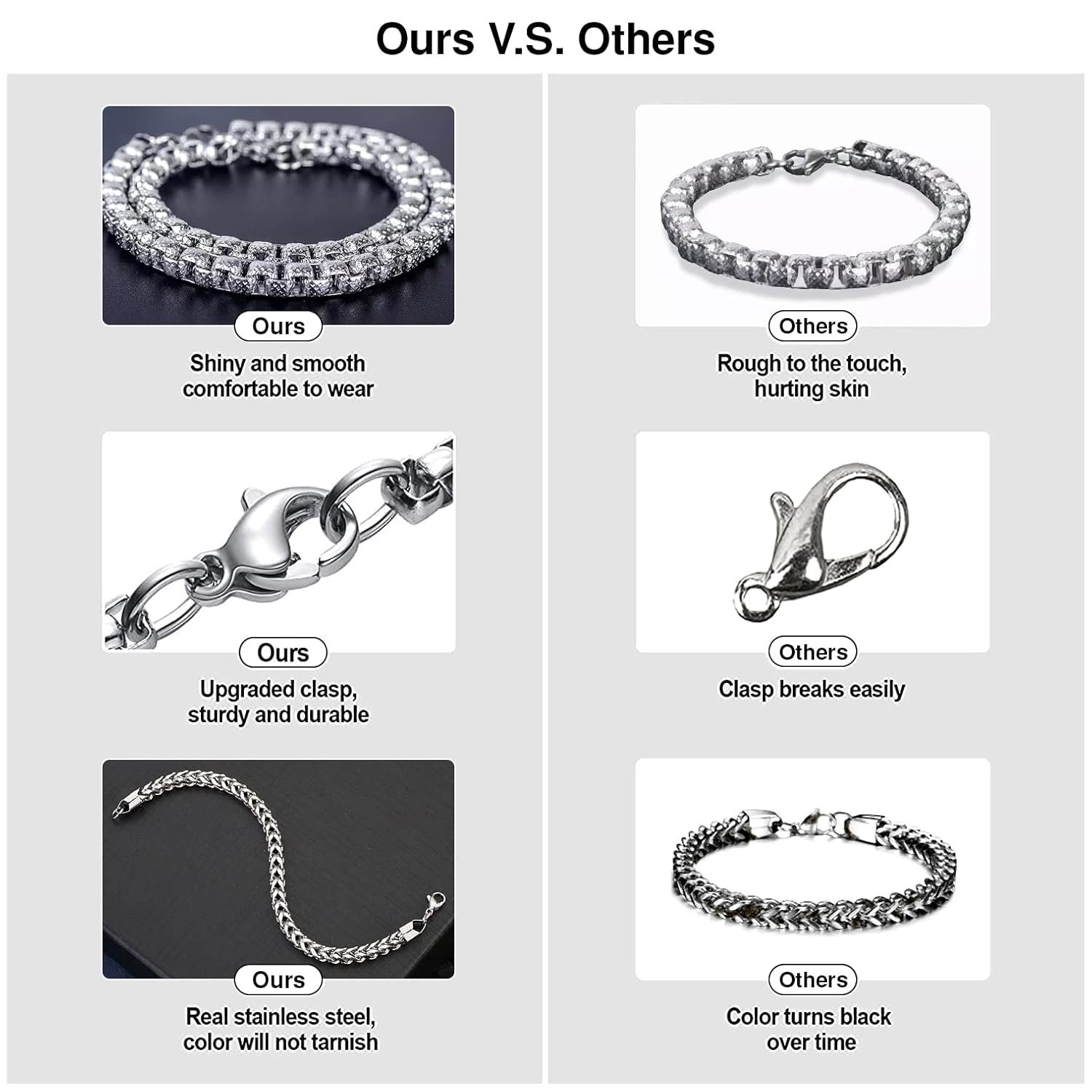 Stainless steel material – hypoallergenic chrome steel, sturdy, not simple to vary colouration or rust, simple to keep up. Extremely polished, and cozy to put on.