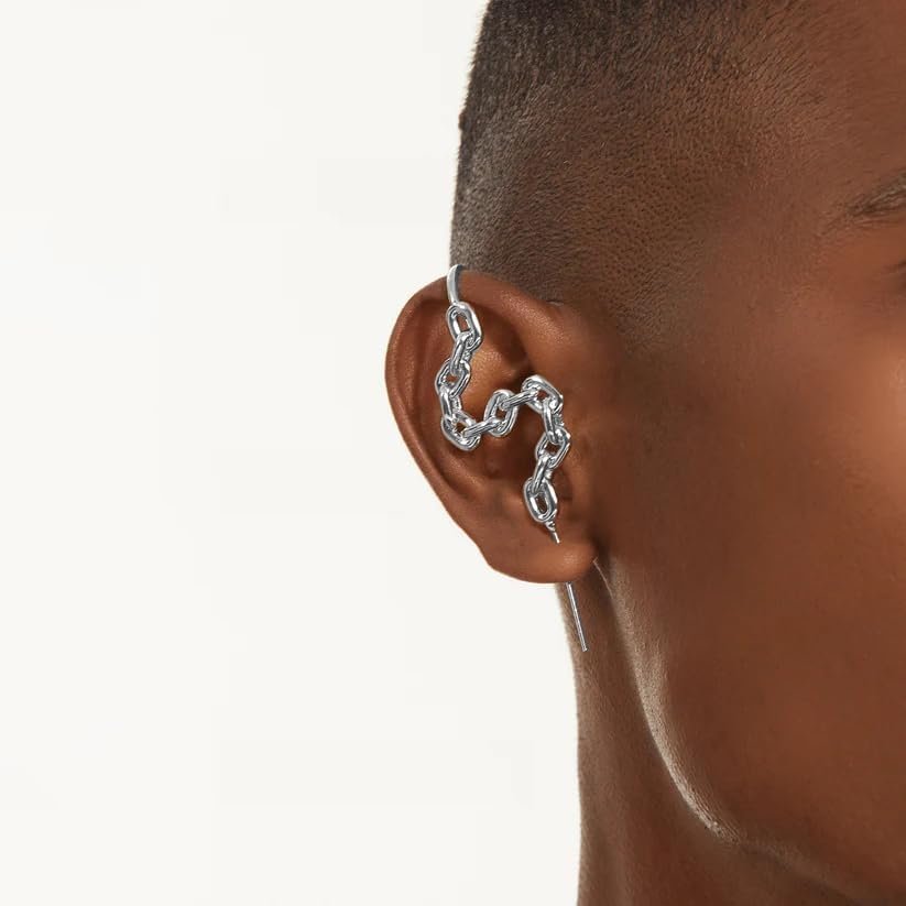 THE MEN THING INTERLINK CHAIN – Pure Titanium Steel Ear Crawler Hook Pin Cuff Earrings for Men & Boys