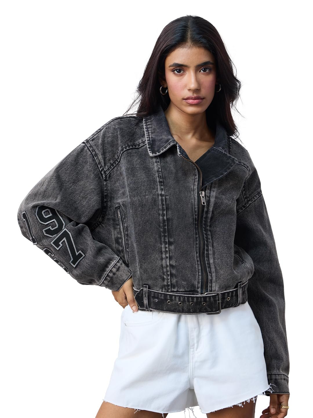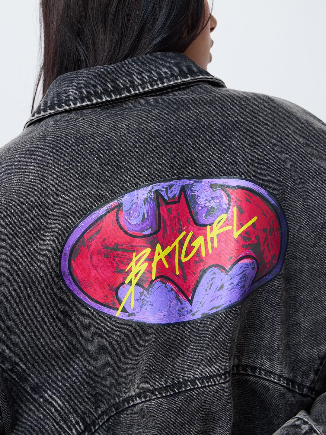 The Souled Store DC: Batgirl Women and Girls Long Sleeves Collared Neck Grey Graphic Printed Cotton Oversized Denim Jacket