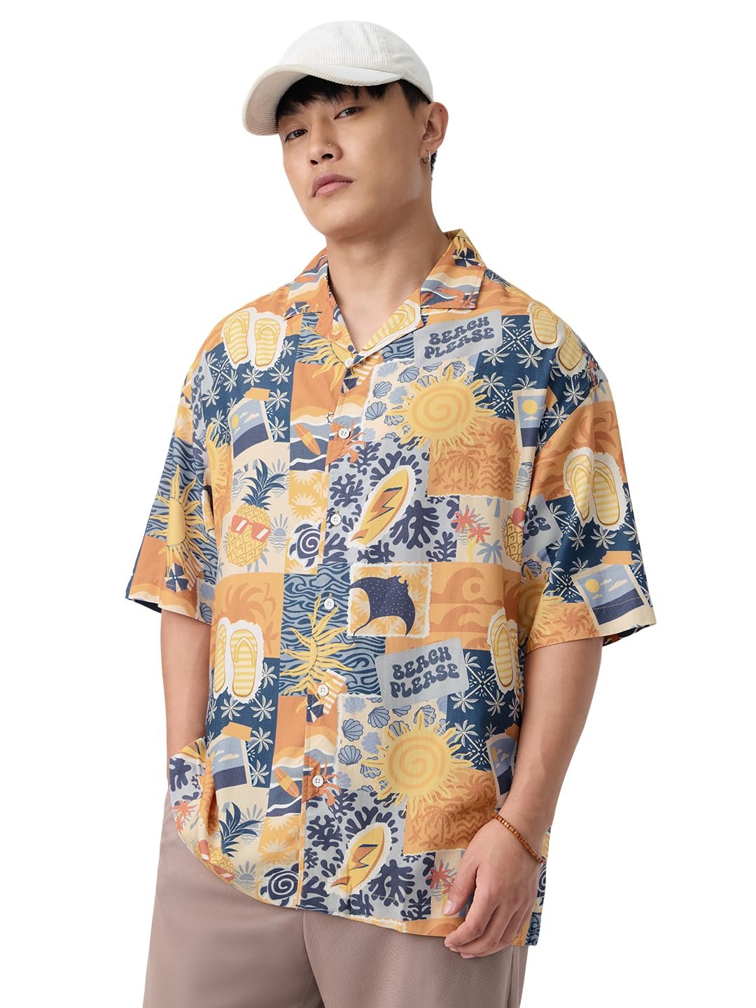 Embrace the ultimate vacation state of mind with this effortlessly cool shirt from The Souled Store. Crafted for comfort and designed to turn heads, this piece is your perfect companion for sunny days and breezy evenings. Wondering how to make a statement without even trying? This oversized tropical shirt is the answer. Made from incredibly lightweight and breathable 100% rayon, it ensures you stay comfortable as you soak up the sun. The all-over tropical print adds a playful, energetic touch to your look, making it a standout piece in any wardrobe. This summer holiday shirt is perfect for beach trips, resort lounging, or casual city outings. Style Tip: Pair this relaxed fit shirt with chino shorts and loafers for a classic holiday look, or wear it unbuttoned over a plain tee with denim for an urban-cool vibe. Don’t just dream of a vacation; wear the vibe. Add this essential summer piece to your cart today and let your style do the talking!