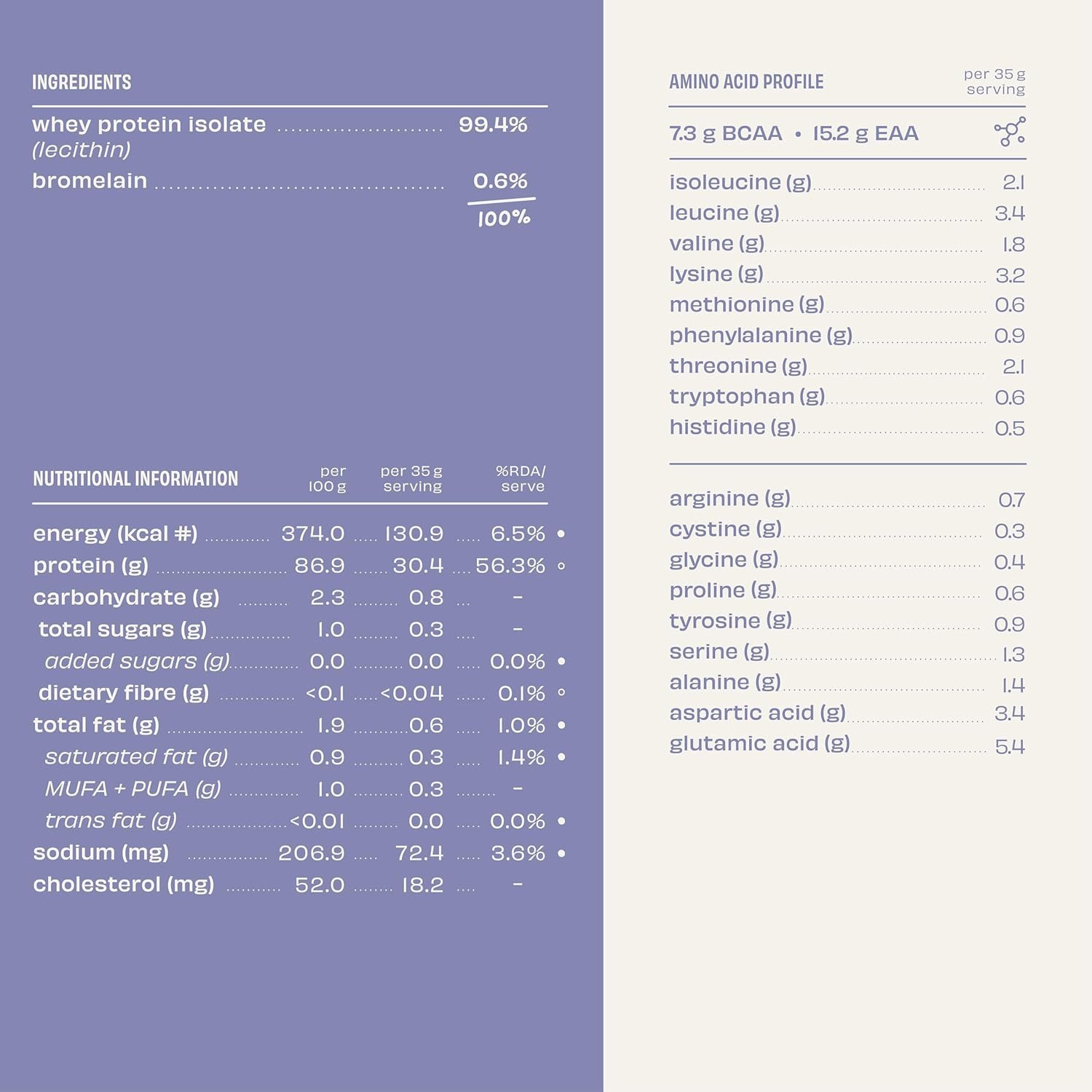 Made with: Whey isolate and bromelain. That’s all!