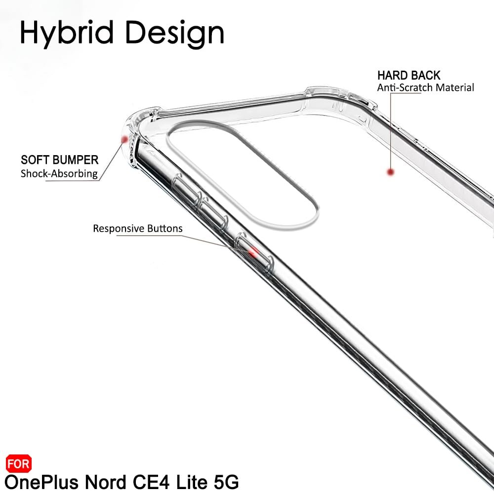 TheGiftKart Crystal Clear Back Cover Case for OnePlus Nord CE 4 Lite 5G | 360 Degree Protection | Shock Proof Design | Transparent Back Case for OnePlus Nord CE4 Lite 5G (PC & TPU, Transparent Bumper)
