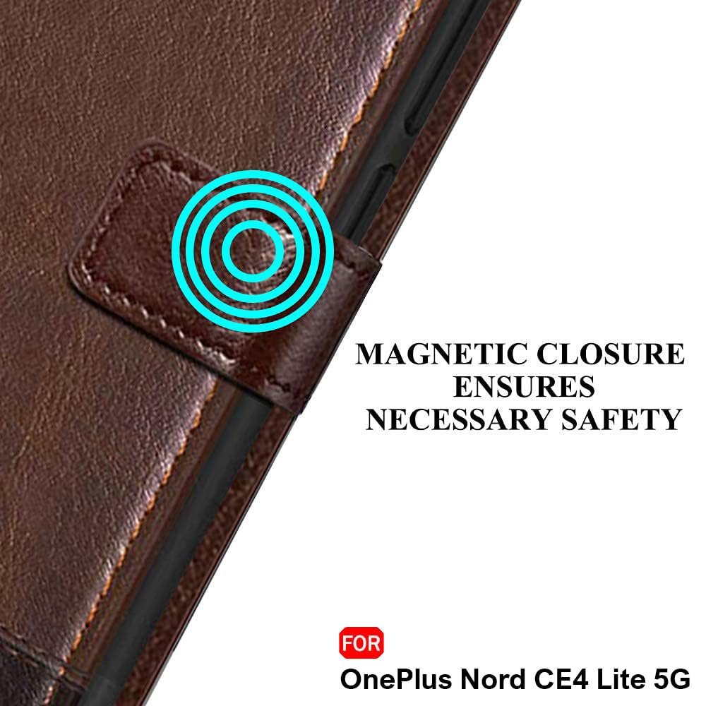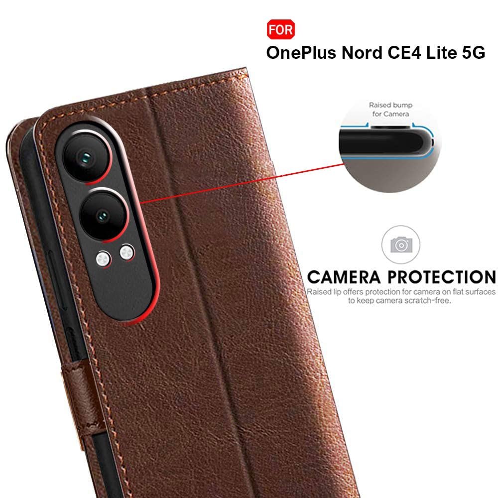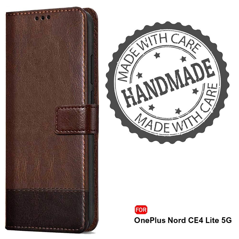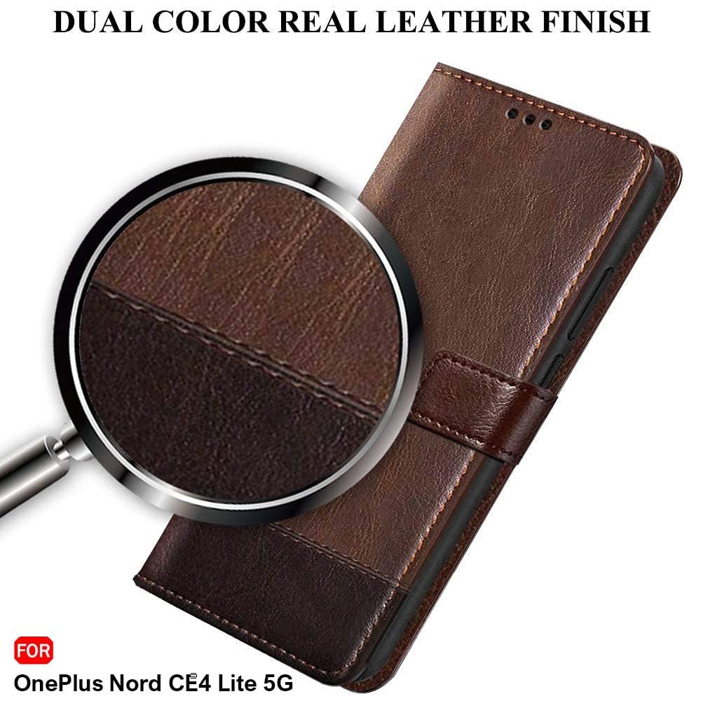 TheGiftKart Flip Back Cover Case for OnePlus Nord CE 4 Lite 5G | Dual-Color Leather Finish | Inbuilt Stand & Pockets | Wallet Style Flip Cover for OnePlus Nord CE4 Lite (Faux Leather, Brown & Coffee)