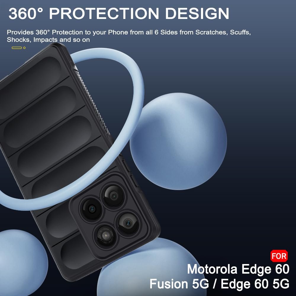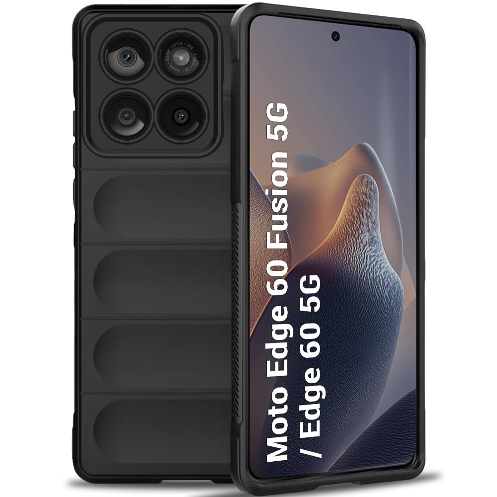 TheGiftKart Liquid Silicon Back Cover Case for Motorola Moto Edge 60 Fusion 5G / Edge 60 5G | ShockProof Military Grade Protection | Micro-Fibre Cloth On Inner Side | Anti-Slip Grip Cover (TPU, Black)