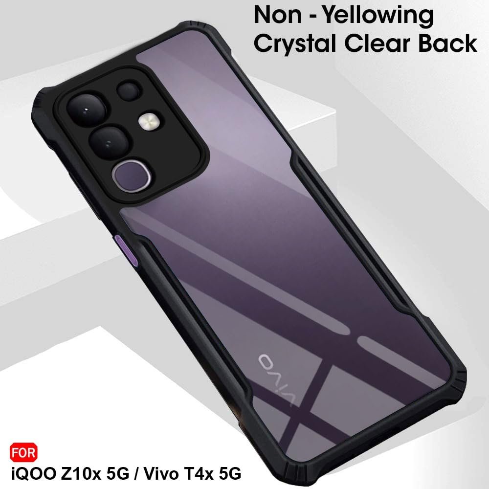 TheGiftKart ShockProof Crystal Clear Back Cover Case for iQOO Z10x 5G / Vivo T4x 5G | 360 Degree Protection | Protective Design | Transparent Cover for iQOO Z10x / Vivo T4x 5G (PC & TPU, Black Bumper)