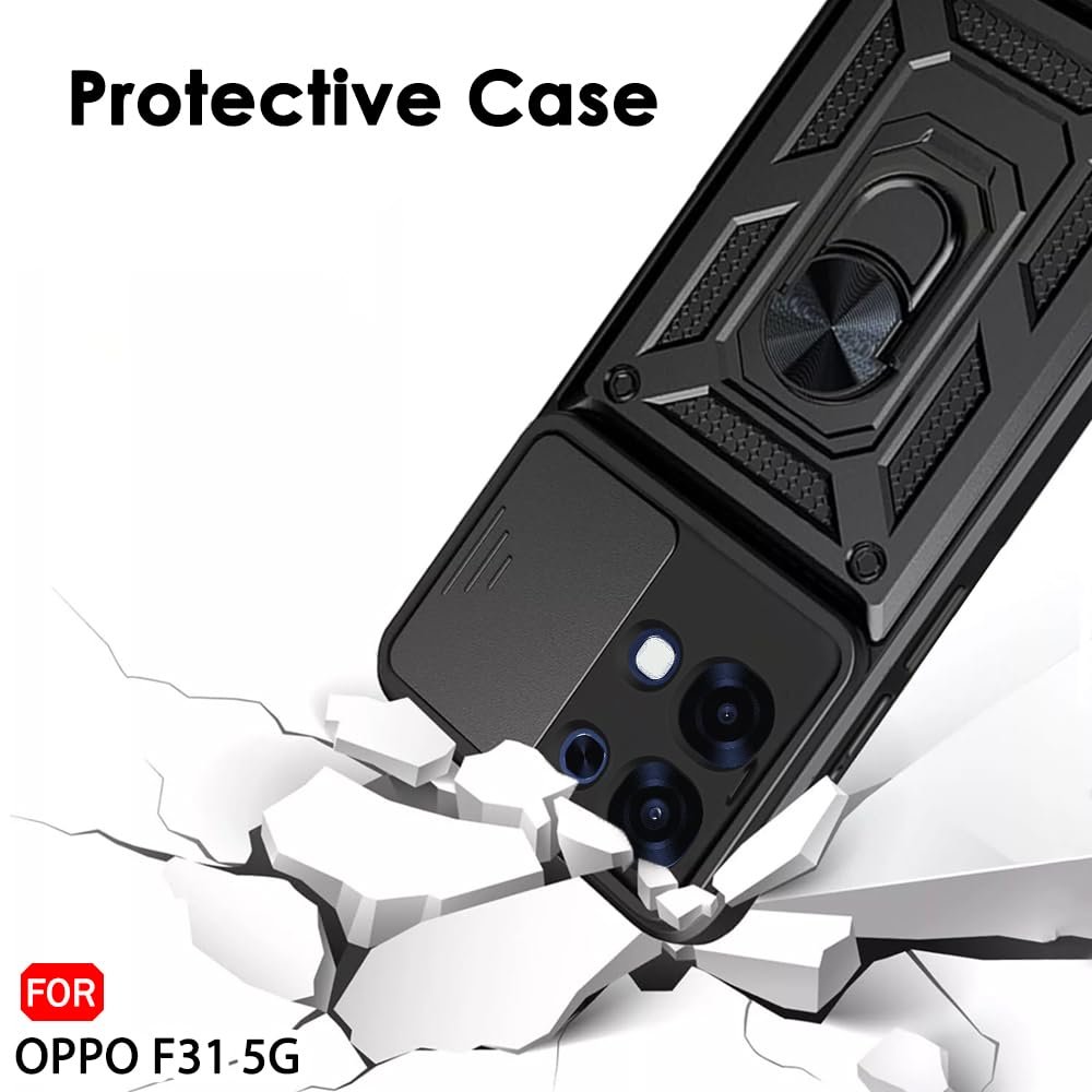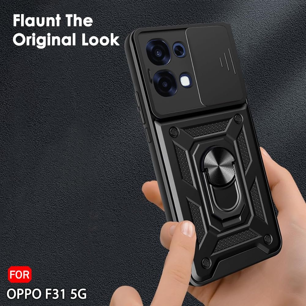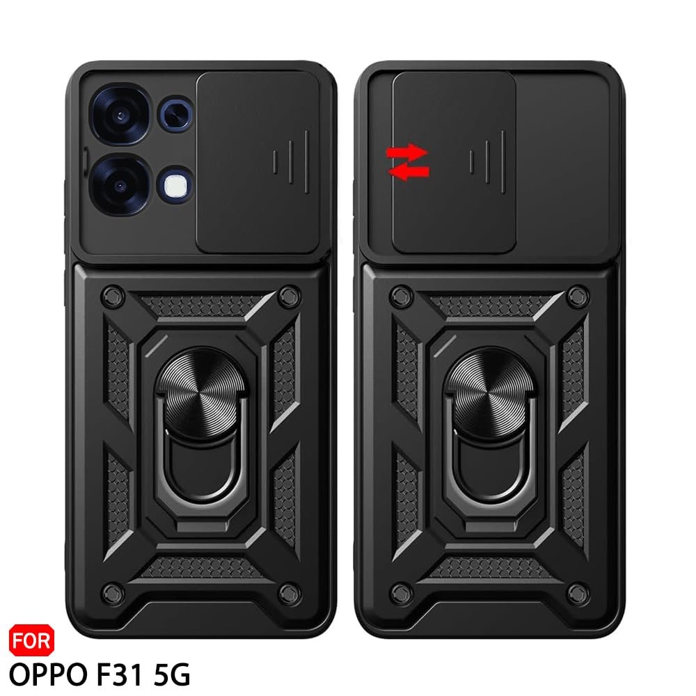 TheGiftKart Tough Armor Bumper Back Cover Case for Oppo F31 5G | Sliding Camera Cover, Kickstand & Ring Holder | 360 Degree Protection Back Cover Case for Oppo F31 5G (PC & TPU, Black)